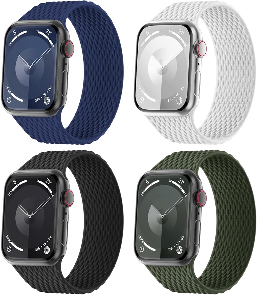 You will get 4 stylish and comfortable silicone solo loop braided watch wristbands in starlight, sand pink, smoke violet, milk tea, inverness green, atlantic blue, cactus and black, different colors can match your outfit perfectly, also an ideal gift for family and friends. We provide 24-hour customer service, please feel free to contact us if you encounter any issues.