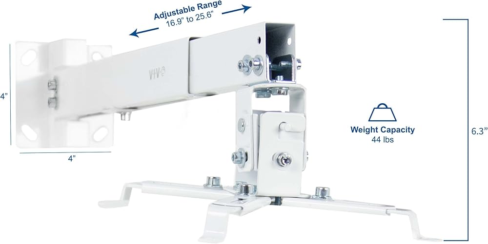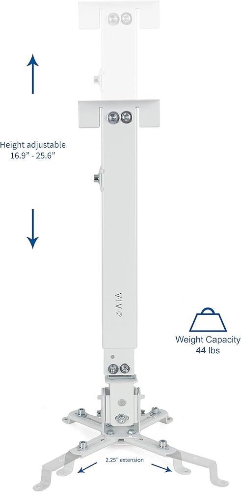 يجعل البناء الصلب الصلب حامل جهاز العرض العالمي هذا على السقف والجدار قادرًا على دعم ما يصل إلى 44 رطلاً. استمتع بزوايا المشاهدة المثالية مع راحة البال، مع العلم أن أجهزتك باهظة الثمن آمنة ومأمونة.