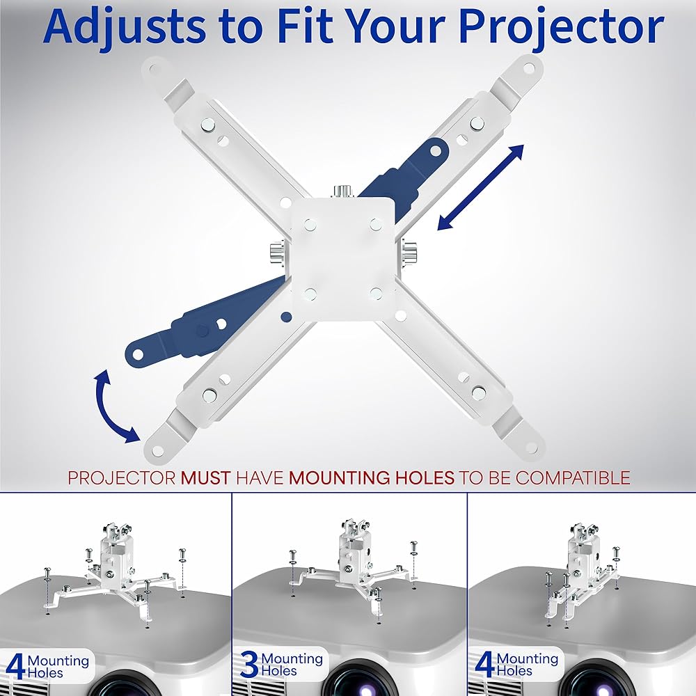 يتيح تصميم التثبيت العالمي لهذه الدعامة أن تناسب معظم العلامات التجارية لأجهزة العرض في السوق مع مسافة فتحة تثبيت تتراوح من 8.9 بوصة إلى 12.4 بوصة.