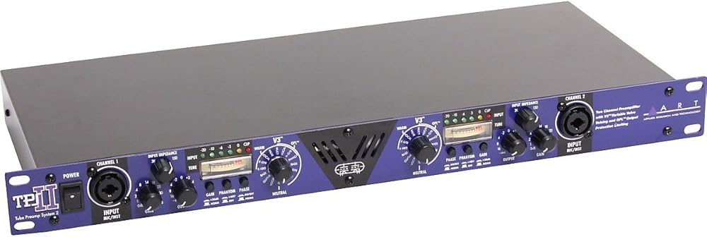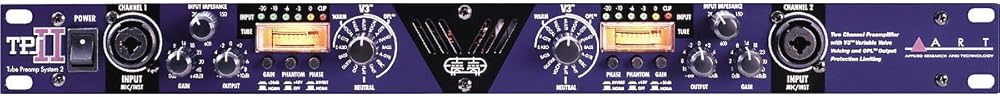 The TPS II (Tube Preamp System 2) is a two channel high performance preamplifier coupled with ARTs proprietary V3 (Variable Valve Voicing) functionality. With variable valve voicing, the TPS II is completely versatile and maintains a high quality of performance you would expect from an ART tube preamp. The TPS II also features variable input impedance which allows users to dial in and match any microphone type from large condensers to ribbon mics.