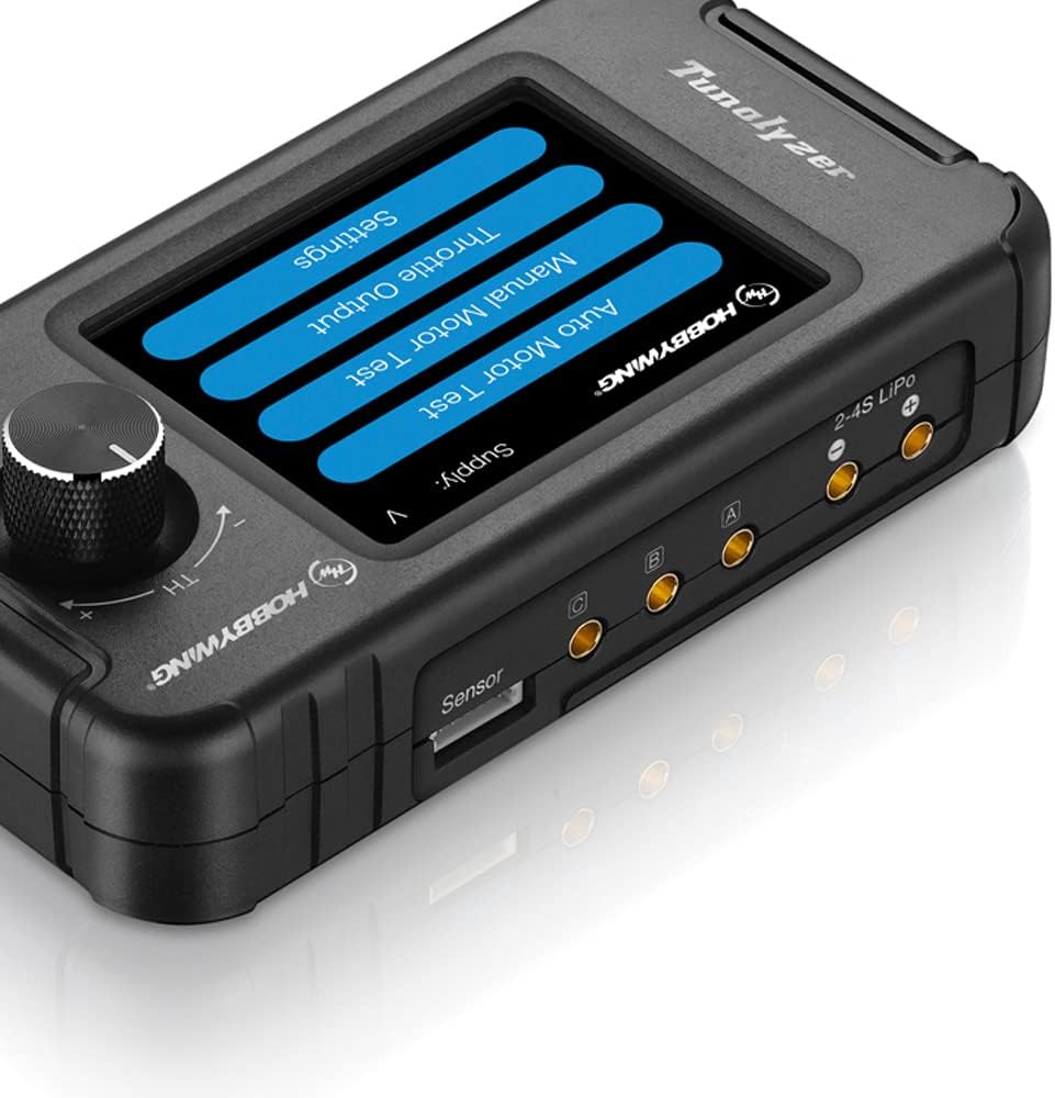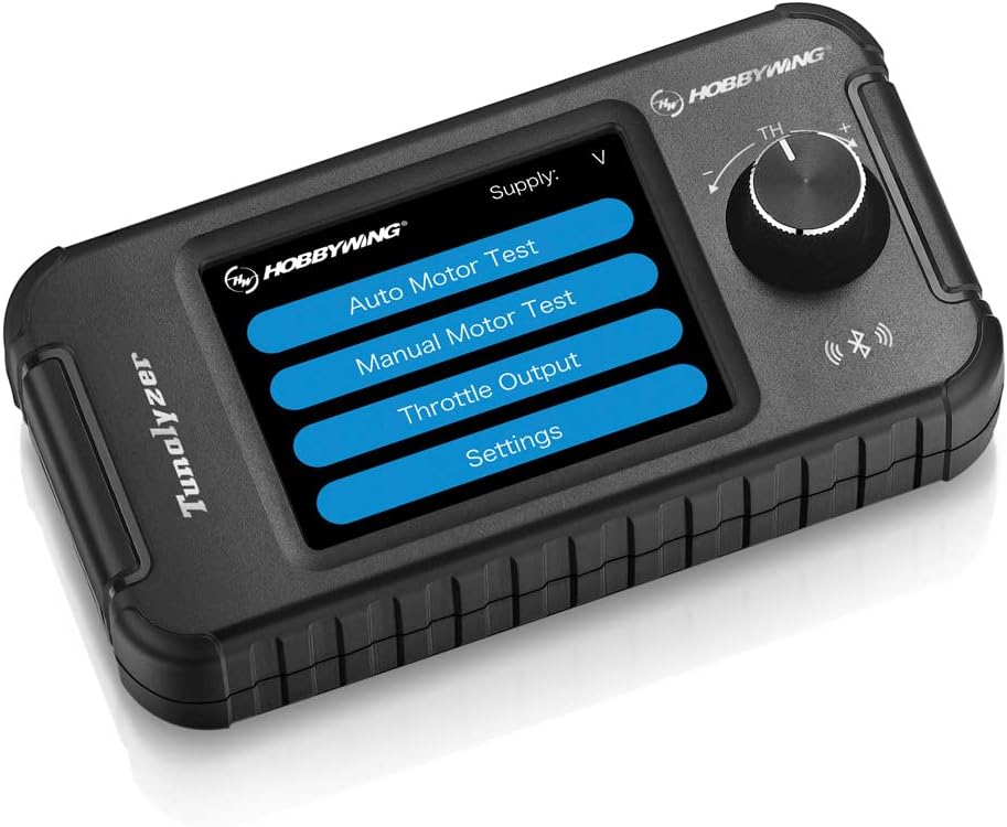 Tunalyzer is used to test the brushless DC motor and its internal components. It can measure the Kv value, rpm, current, end-bell timing, and sensor elements of the brushless motor. These parameters can be displayed on the LCD in real time so that you can have an intuitive and full understanding of the motor used. In addition, the built-in Bluetooth of the Tunalyzer can establish communication with your HOBBYWING ESC through the mobile phone app to realize the parameter setting and firmware updating of the ESC