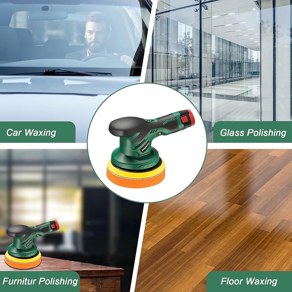 【شاشة عرض الطاقة بثلاثة ألوان】يحتوي مقبض آلة التلميع على 3 مؤشرات ألوان لإظهار الطاقة المتبقية: الضوء الأحمر - تحتاج البطاريات إلى إعادة الشحن؛ الأضواء الحمراء والصفراء - حوالي نصف الطاقة؛ الأضواء الحمراء والأصفر والأخضر - البطارية ممتلئة؛