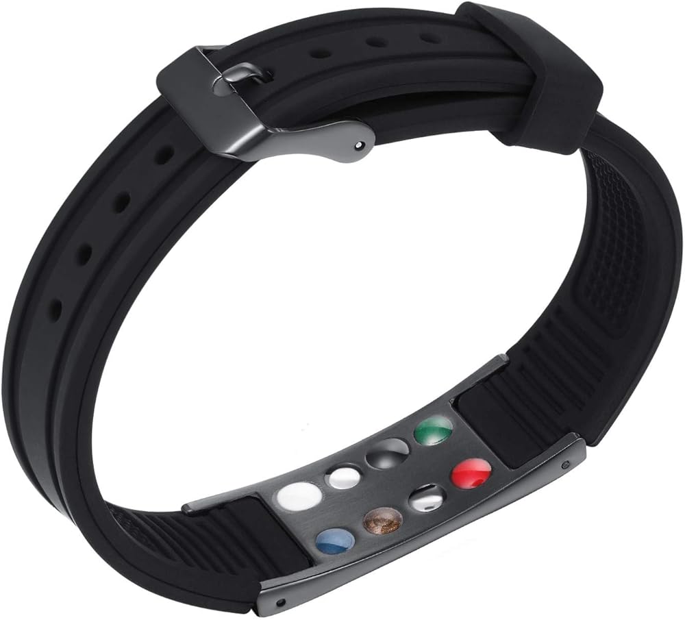 【جودة ممتازة】 أساورنا المغناطيسية المصنوعة من السيليكون مقاومة للماء والعرق تمامًا. التصميم خفيف الوزن وجيد التهوية مريح للارتداء طوال اليوم ويمكنه تحمل أي نشاط - الاستحمام والسباحة وممارسة الرياضة، ويمكن ارتداؤه أثناء النوم. مصنوع من السيليكون الطبي الناعم ولا يسبب الحساسية بنسبة 100% لضمان عدم تعرضك لأي طفح جلدي أو تفاعلات حساسية.