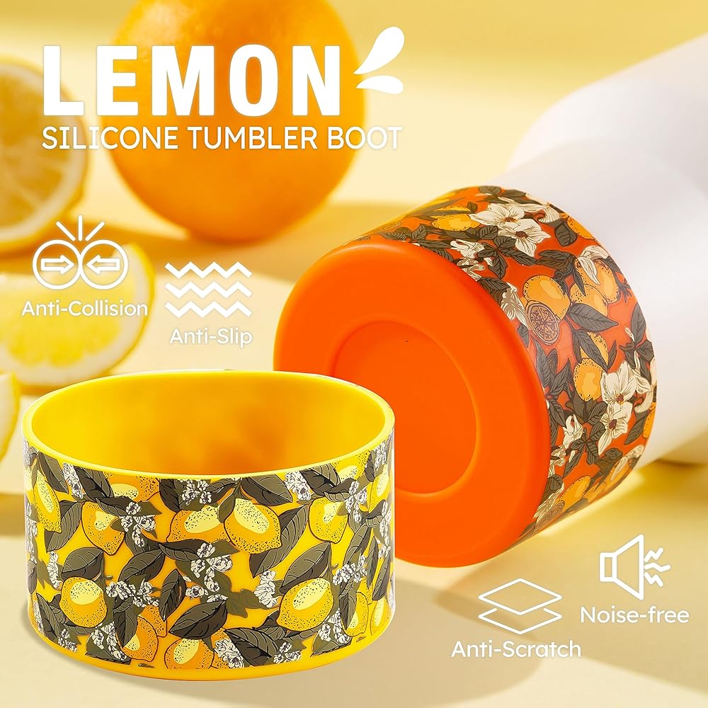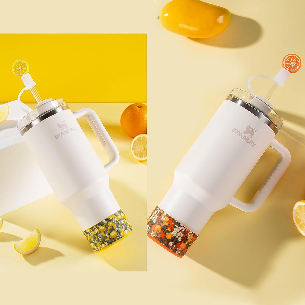 Complete protection and vibrant designs: Elevate your Stanley cup with durable 30oz and 40oz boot sleeves and innovative orange and lemon straw toppers.