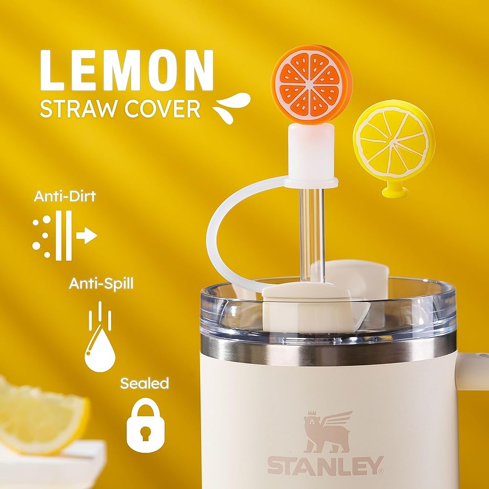 Enhance your Stanley cup experience with our exclusive Stanley Cup Accessories Bundle! This all-in-one set offers a range of stylish and functional accessories, meticulously designed to elevate your drinking moments to a whole new level of convenience and charm. Keep your straws pristine and protected with our adorable Stanley Straw Covers, adding a personal touch to your cup while ensuring a clean sipping experience. Upgrade your cup's hygiene game with our innovative Stanley Straw Toppers. Bid farewell to worries about dust, debris, and dirt finding their way into your drink. Our straw toppers provide a secure barrier, so you can enjoy your beverages worry-free. Safeguard your 30oz and 40oz Stanley cups with our high-quality Stanley Boot Sleeves. Crafted from premium silicone, these boot sleeves not only protect your cups from scratches and dents but also feature eye-catching orange and lemon designs that make your cups stand out in style. The accessories in this bundle are thoughtfully designed to fit perfectly with both 30oz and 40oz Stanley cups, ensuring a seamless and secure fit for your convenience. Our Stanley Cup Accessories Bundle allows you to add a touch of personality to your cups and express your individuality. Upgrade your Stanley cup to new heights of practicality, hygiene, and trendiness. Embrace the joy of personalization and safeguard your favorite beverages from unwanted elements. Make your Stanley cup truly yours with our versatile and adorable Stanley Cup Accessories Bundle!