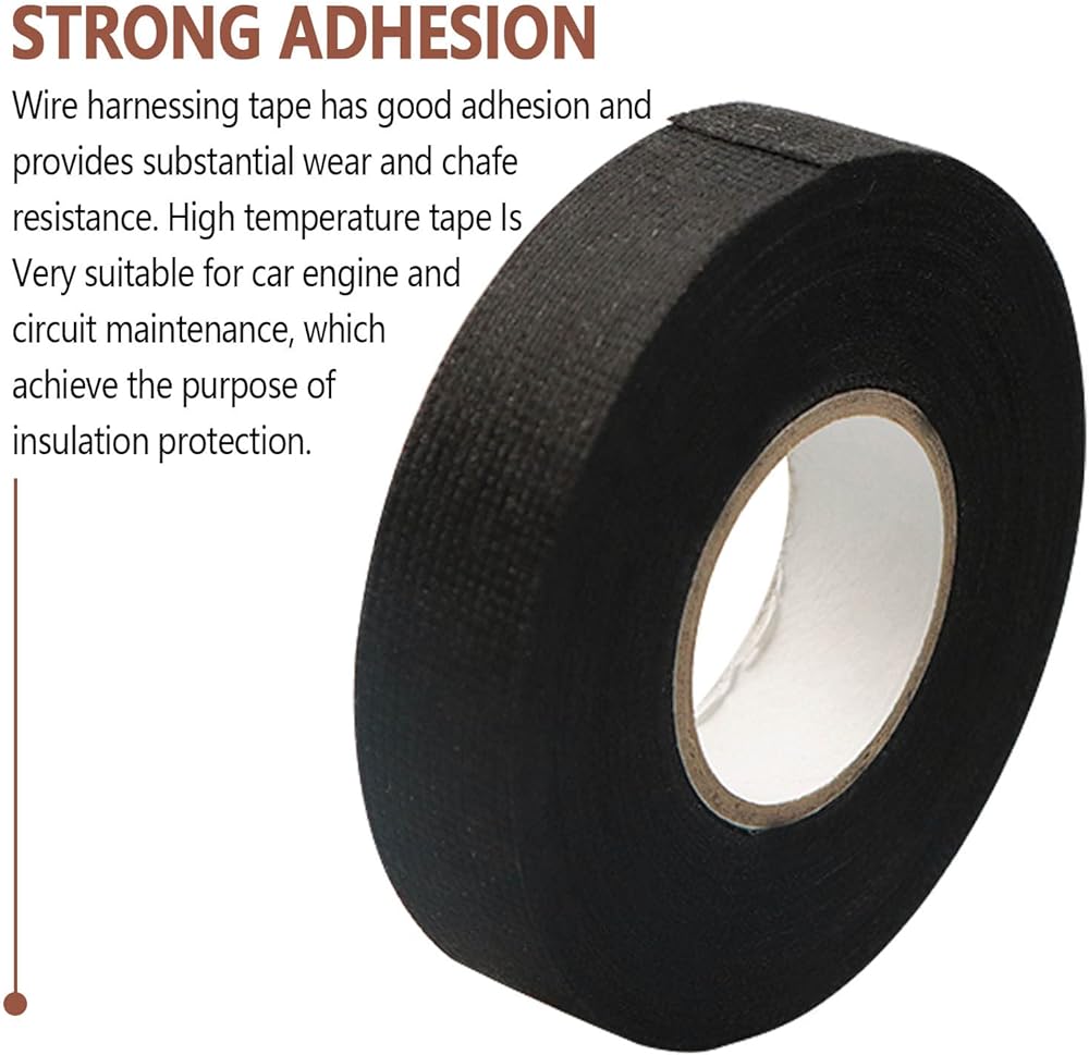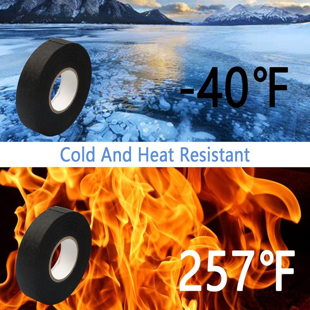 • 【شريط قماشي】- العرض 50 مم/2 بوصة، الطول 49.2 قدم/ × 15 م. يعمل الشريط اللاصق على حماية أحزمة الأسلاك بشكل فعال من أجل العزل وحماية حجرة المحرك ولف البطارية، وتقليل الصوت وامتصاص الصدمات، وتوفير الحماية من الحرارة والتآكل.