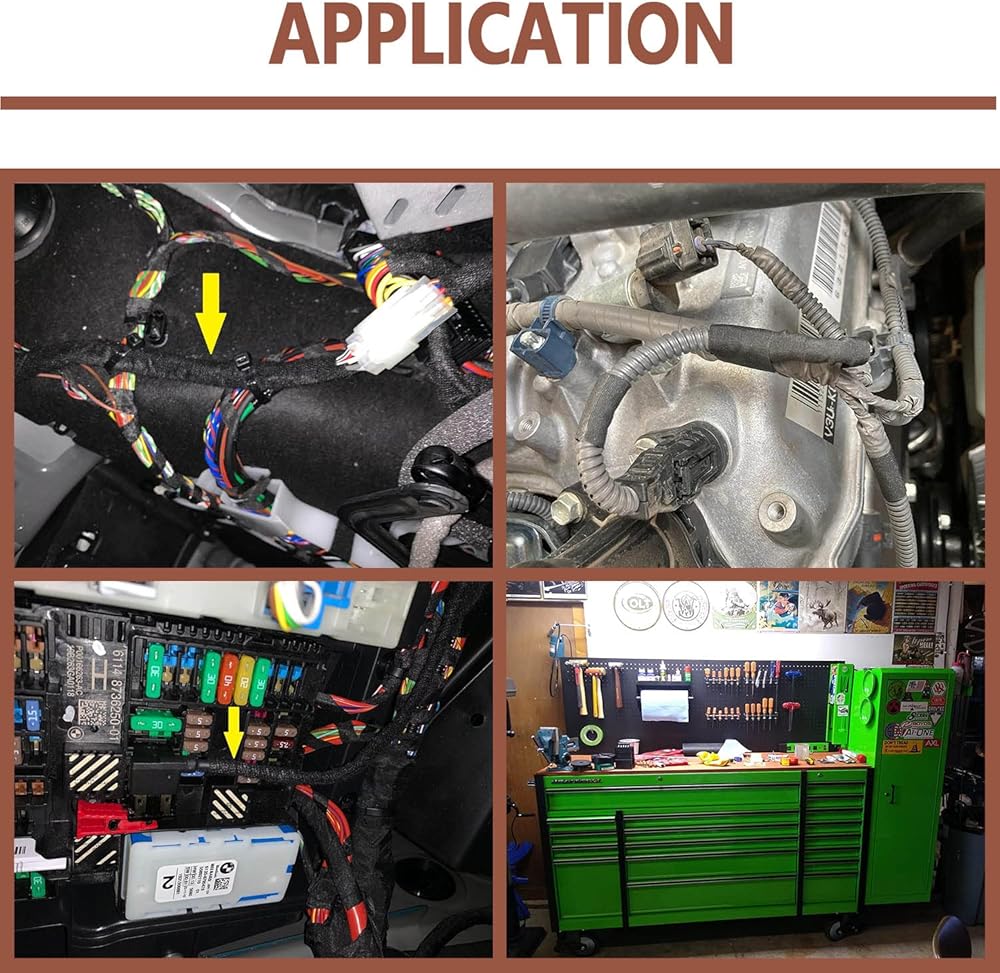 • 【الاستخدام】- مناسب للاستخدام في أحزمة الأسلاك الداخلية للسيارات، مثل أحزمة أسلاك لوحة الأدوات، ولف أسلاك الأسلاك الرئيسية، وما إلى ذلك. يمكن أيضًا استخدام شريط تسخير الأسلاك في التطبيقات المتعلقة بالسيارات، وأسلاك المكونات الكهربائية، وحماية أسلاك المحرك.