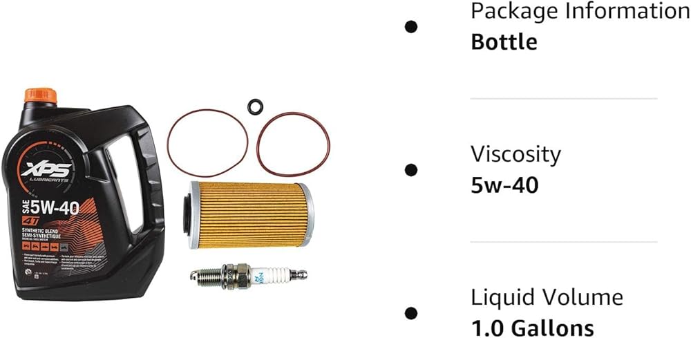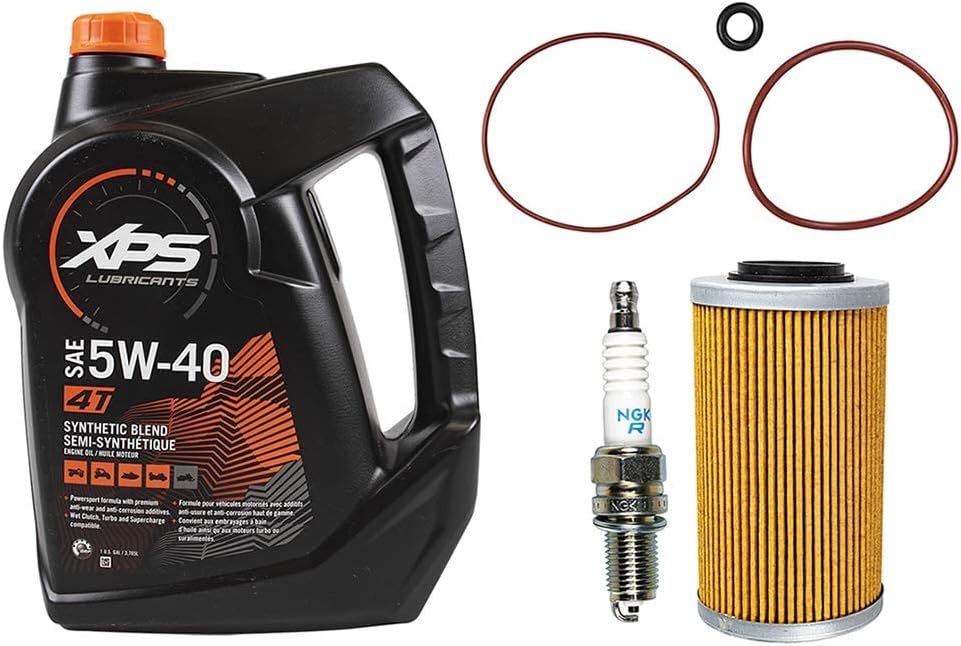 - Includes: 1 Gallon BRP 4-Stroke Synthetic Blend Summer Grade Oil / 1 Aftermarket Oil Filter with O Rings / 3 NGK Spark Plugs DCPR8E 4339