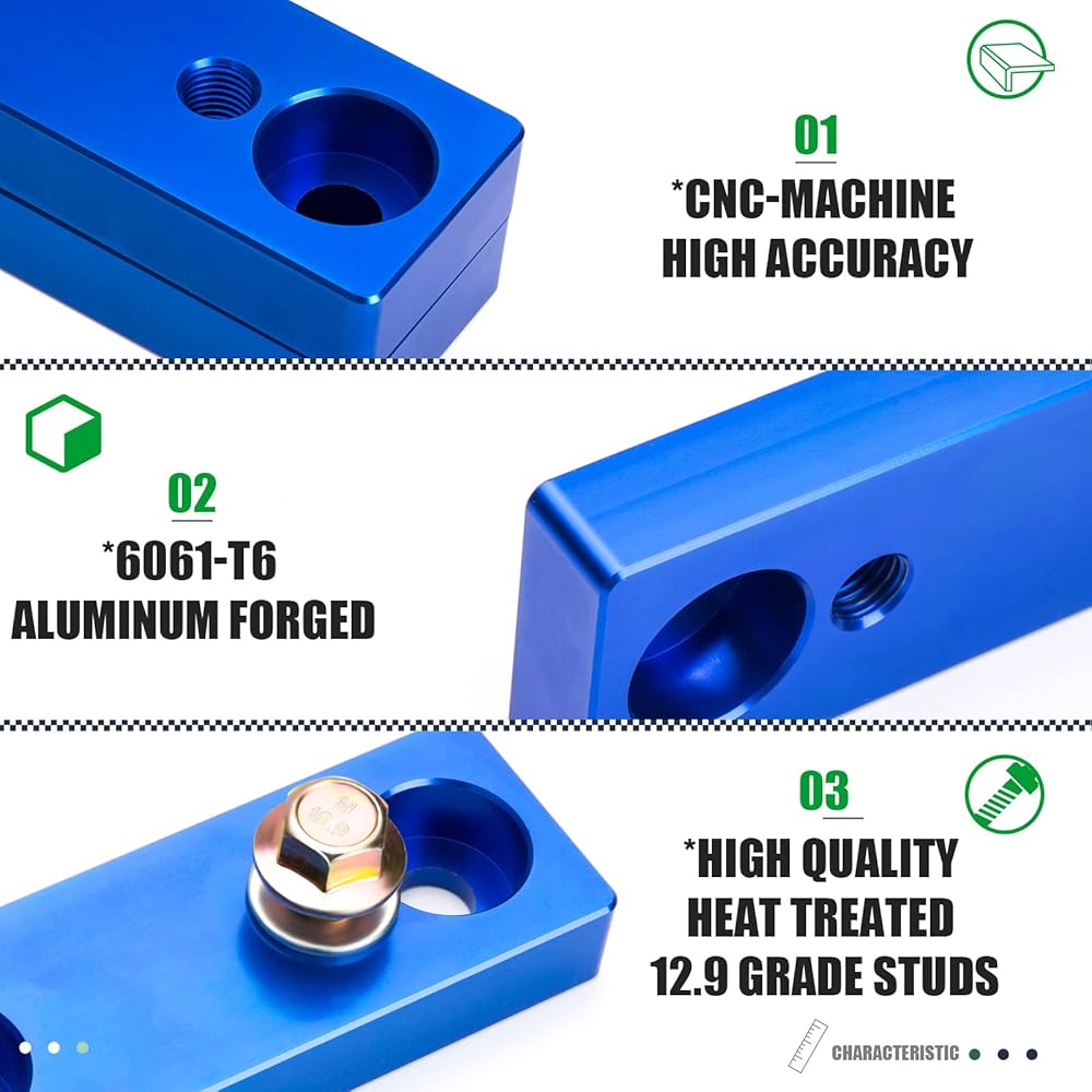 • 【المواد】مجموعات 2x T6 من الألومنيوم المطروق مع 4x M10x1.25x20 براغي شفة وحشية شفة 4x M10. ماكينة CNC دقيقة ولمسة نهائية مؤكسدة باللون الأزرق لمتانة قوية.