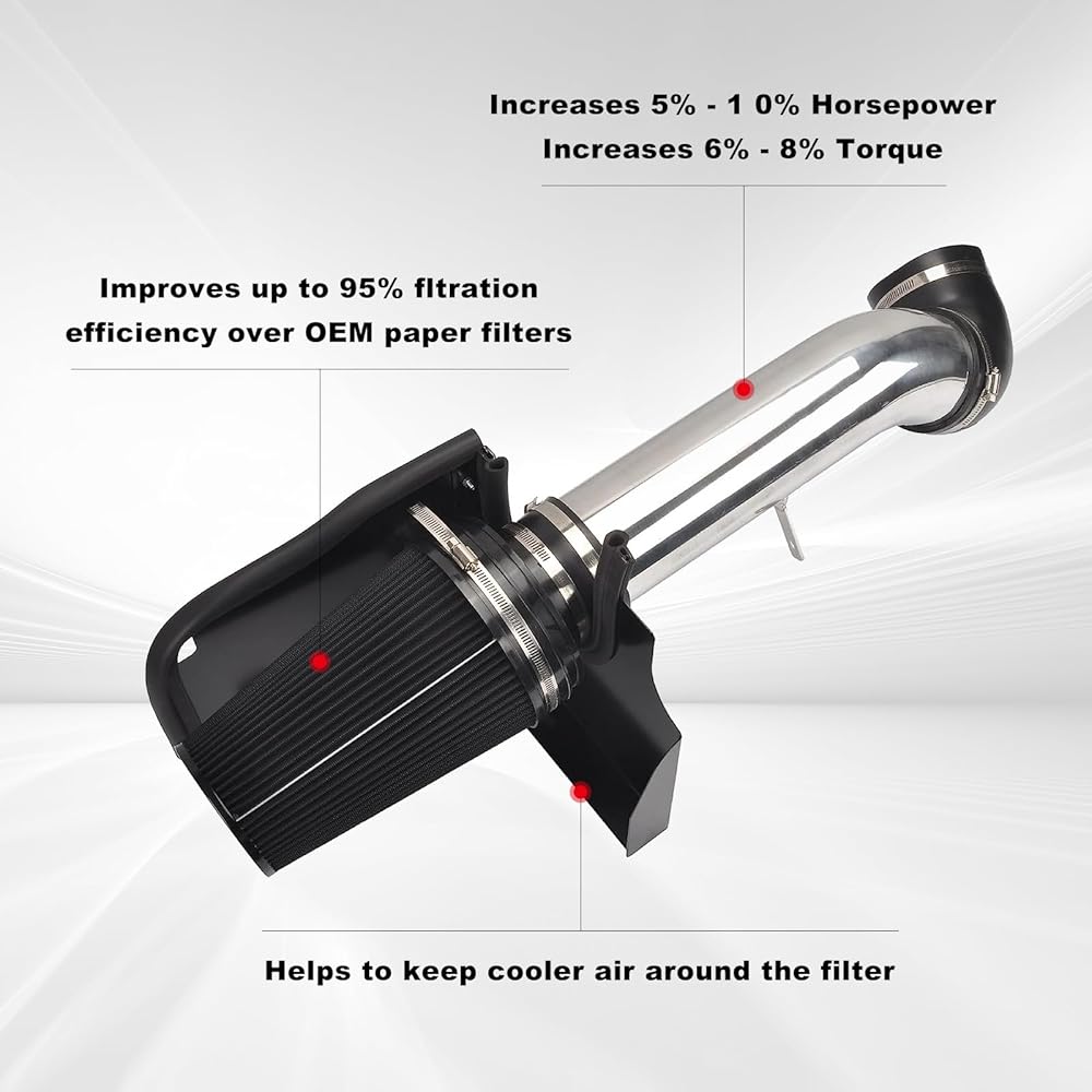 • [أطلق العنان لإمكانيات محركك] تم تصميم مجموعة سحب الهواء البارد مقاس 4 بوصة لزيادة القدرة الحصانية بنسبة 5-10% وعزم الدوران بنسبة 6-10%، مما يمنح سيارتك دفعة قوية في الأداء.