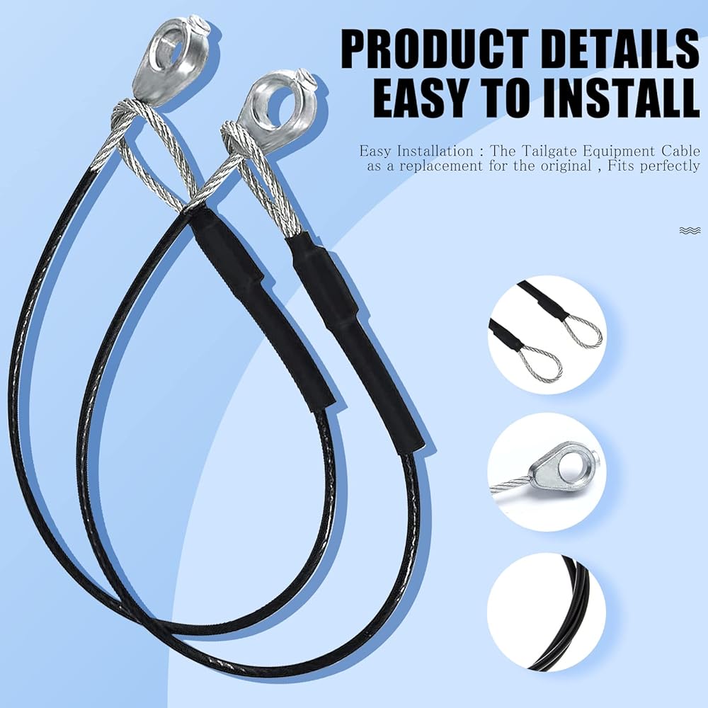 Compatible with JD John Deere Gator Utility Vehicle:4X2, HPX615E, HPX815E, TE, TH 6X4 (Diesel and Gas), TX or TX 4X2, TX Turf or TX 4X2 Turf, XUV625i, XUV825E, XUV825i, XUV825I S4, XUV825M, XUV825M S4, XUV835E, XUV835M, XUV835R, XUV855D, XUV855D S4, XUV855E, XUV855M, XUV855M S4, XUV865E, XUV865M, XUV865R. Easy to Install - Exact replacement tailgate cable,driver's and passenger's sides, for the left and right side of the tailgat, you can install in minutes.