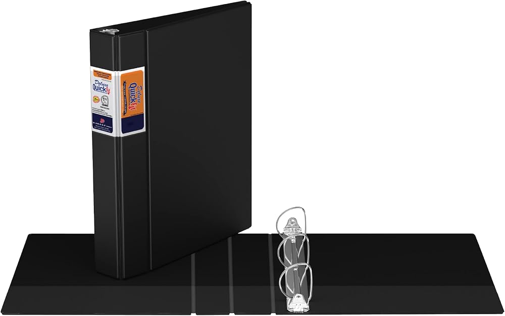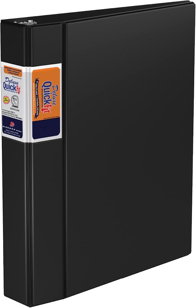 Organize your home, school, or office space with this heavy-duty D-ring binder. From construction plans to company data, each of your documents can have a designated place. Our 3-ring binder includes 2 interior pockets: 1 inside the front cover and 1 inside the back cover. The pockets give you extra room to store small items that you don't want to punch holes in, such as artwork, blueprints, or note cards, and the clear ink-resistant material allows you to see what's in each pocket. This binder also features a unique overlay design that allows you to use a single sheet of paper to design a custom decorative leaf insert that wraps around the spine to the front cover. An insert is easy to place and allows you to quickly identify your binder. Whether you need a reliable construction binder or a sleek professional binder, our QuickFit binder is the perfect fit.