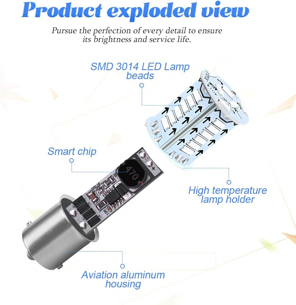 【High Quality Product】: 1157 led bulb, built-in constant current decoding drive, voltage stability, prevent flash frequency. It can quickly dissipate heat and extend service life. Brighter than the original headlights, lower heat. Standard universal plug, plug and play, very simple to use.