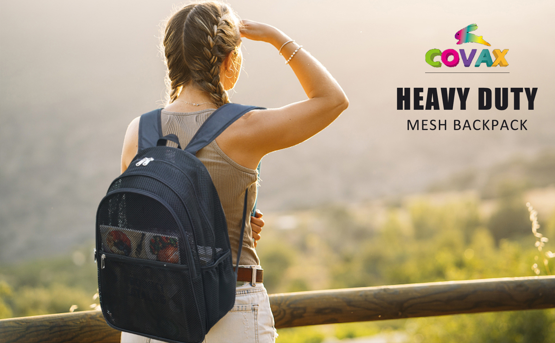 حقيبة ظهر شبكية من كوفاكس، حقيبة ظهر شبكية شديدة التحمل، حقيبة ظهر شبكية سوداء مع ظهر مبطن مريح للسفر والسباحة والشاطئ والرياضات الخارجية