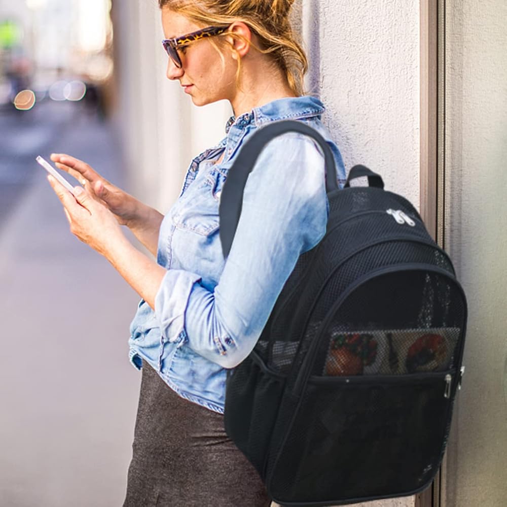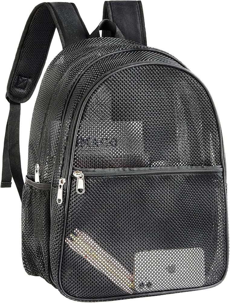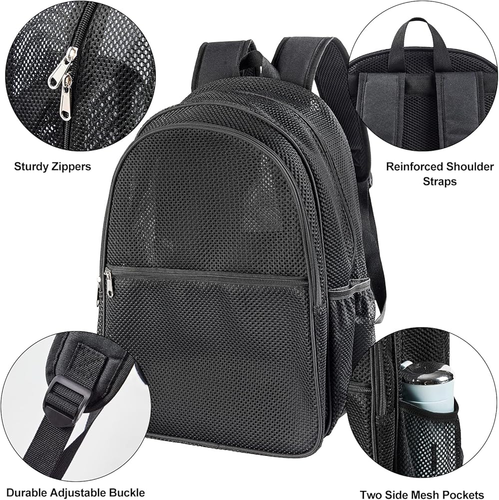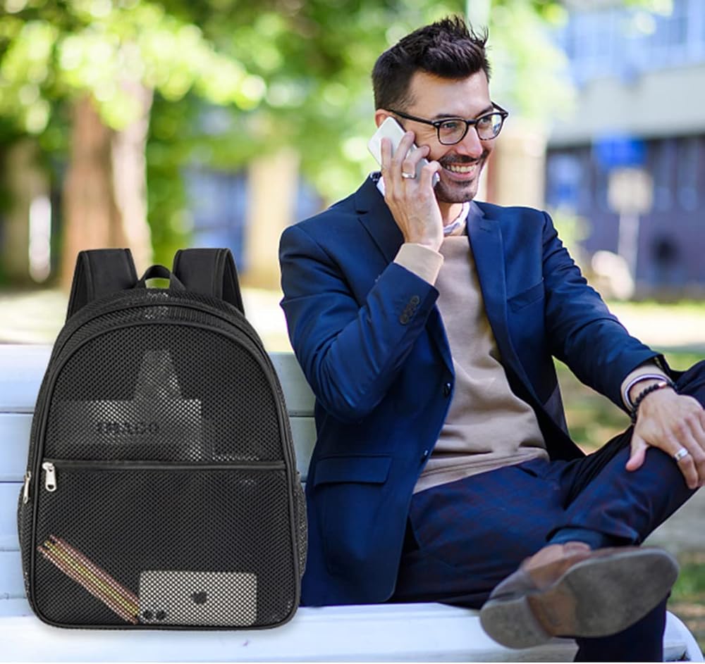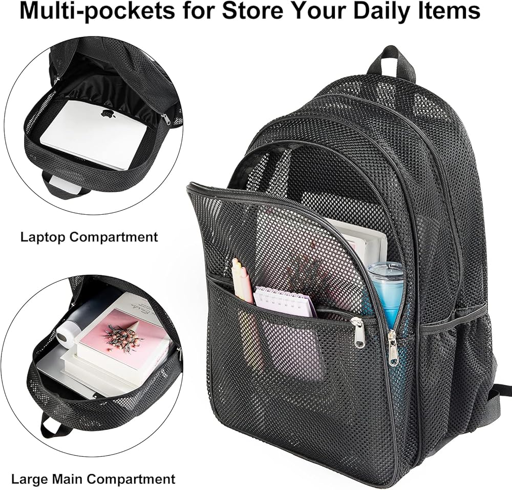 • حقيبة ظهر شفافة: حقيبة الظهر الشبكية الخاصة بنا مثالية لأولئك الذين يحتاجون إلى حقيبة ظهر شفافة أو شبكية للكلية. بالنسبة لأولئك الذين لا يحبون حقيبة الظهر المصنوعة من البلاستيك، ستكون خيارًا بديلاً لك!
