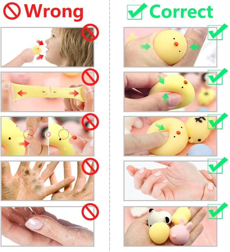 💕 مادة ناعمة وآمنة: مصنوعة من مادة مطاط TP الناعمة الآمنة وغير السامة مع ملمس جيد للغاية. إذا اتسخت ألعاب موتشي المضغوطة بعد اللعب، فمن السهل جدًا تنظيفها بالماء الدافئ والصابون وستصبح نظيفة مرة أخرى بعد بضع دقائق.