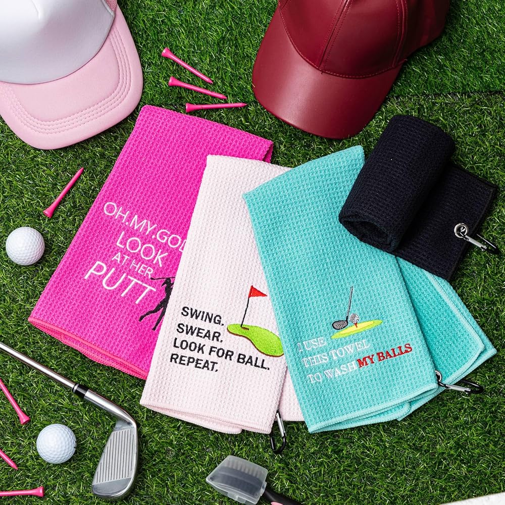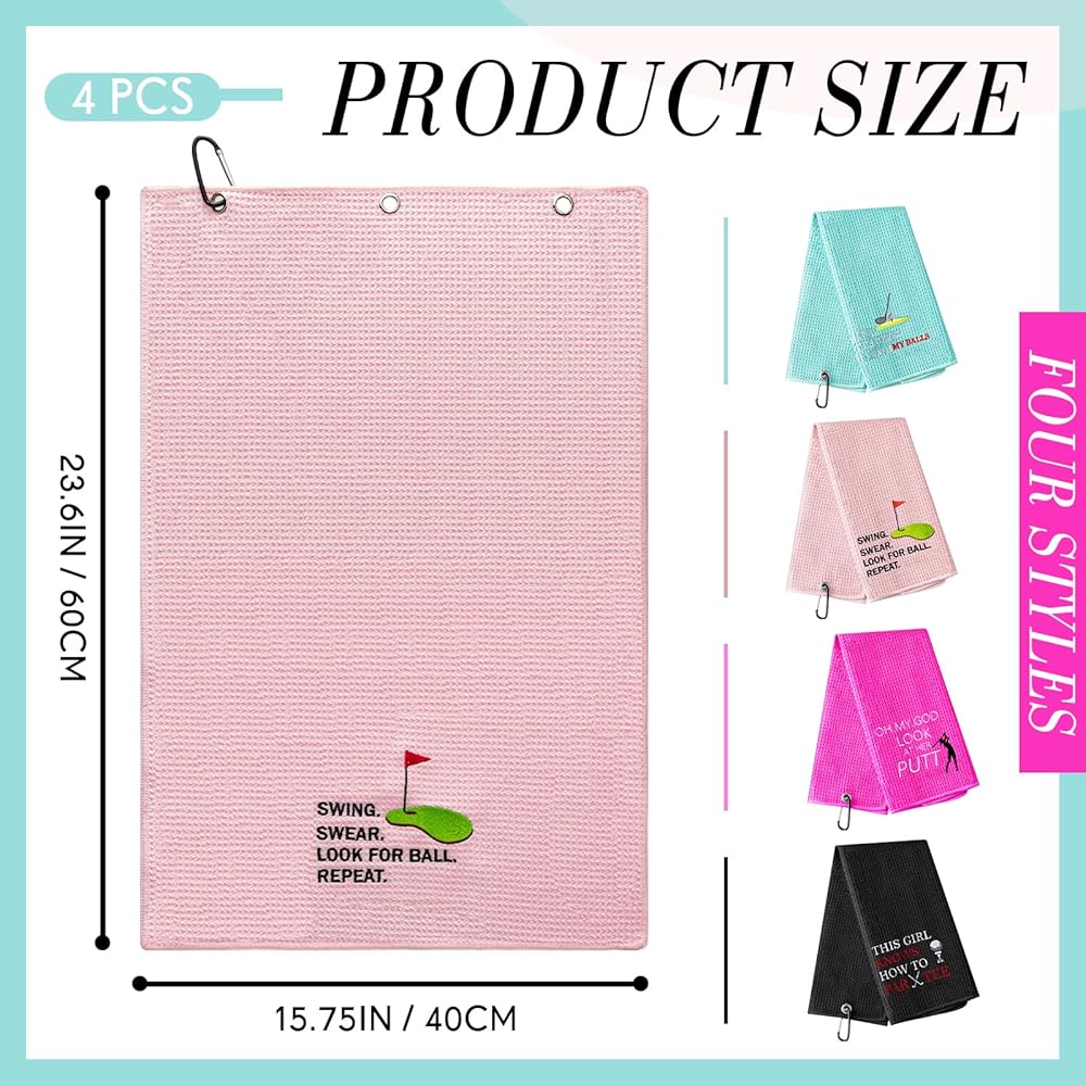 4 قطع من منشفة الجولف المضحكة من Buryeah لحقائب الجولف مع مشابك وهدايا الجولف للنساء من الألياف الدقيقة بنمط الوافل وإكسسوارات الجولف لمحبي الجولف وهدايا عيد الميلاد للتقاعد، 4 أنماط