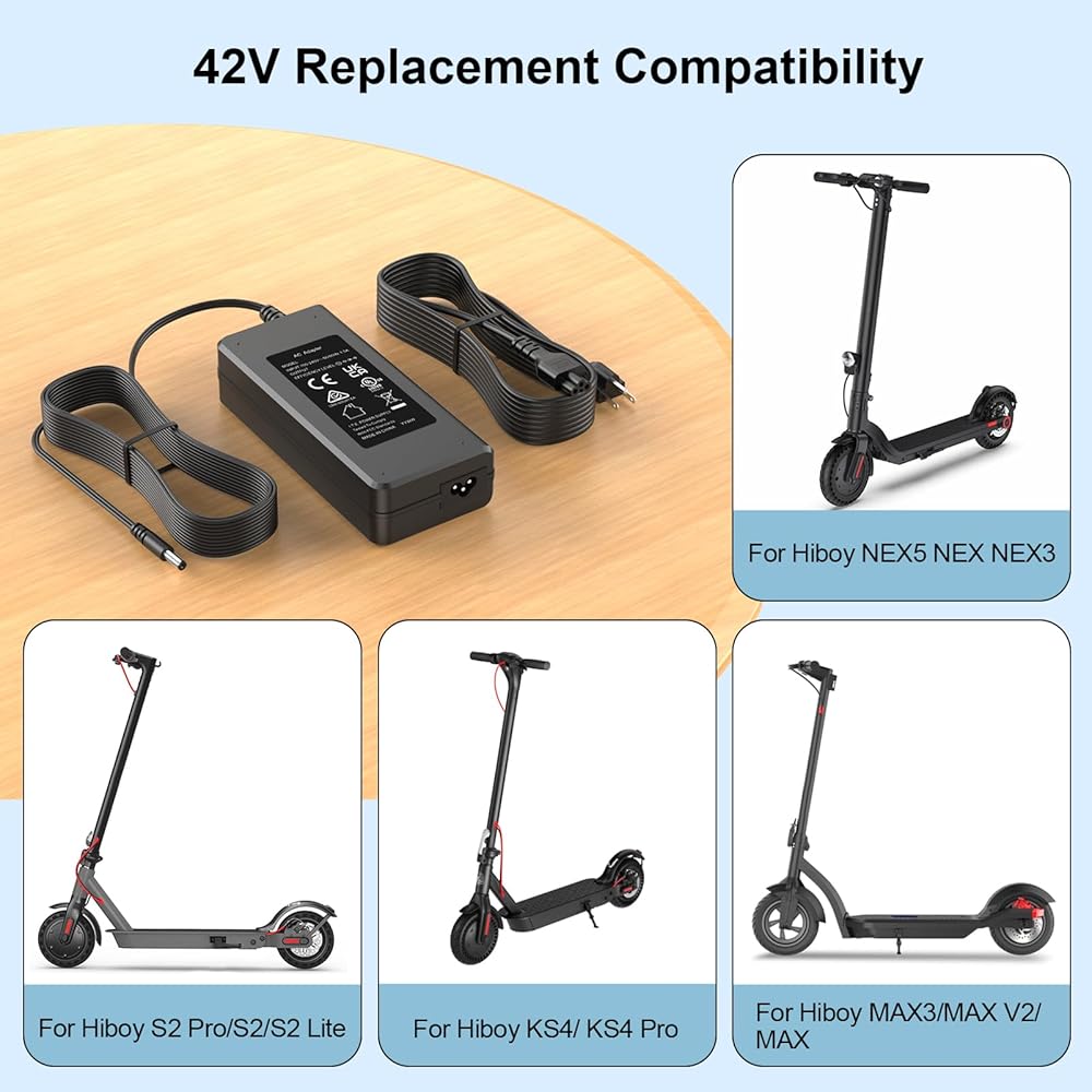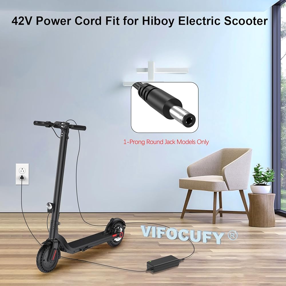 【مواصفات محول 42 فولت】محول تيار متردد بديل VIFOCUFY 42 فولت لـ Hiboy MAX3 MAX V2 NEX5 NEX NEX3 مع كابل 7.5 قدم/2.3 متر؛ تيار متردد الإدخال 100 فولت-240 فولت؛ الإخراج: 42 فولت. لون أسود