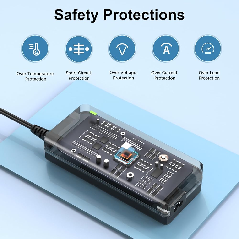 【قائمة UL】شاحن بديل لسلك الطاقة معتمد من UL يناسب Hiboy S2 Pro، مزود الطاقة يبني وظائف حماية السلامة، المزيد من الأمان أثناء الشحن لـ Hiboy S2 Lite KS4 Pro: حماية من درجة الحرارة الزائدة، حماية الدائرة القصيرة، حماية من الجهد الزائد، التيار الزائد الحماية، أكثر من حماية الحمل