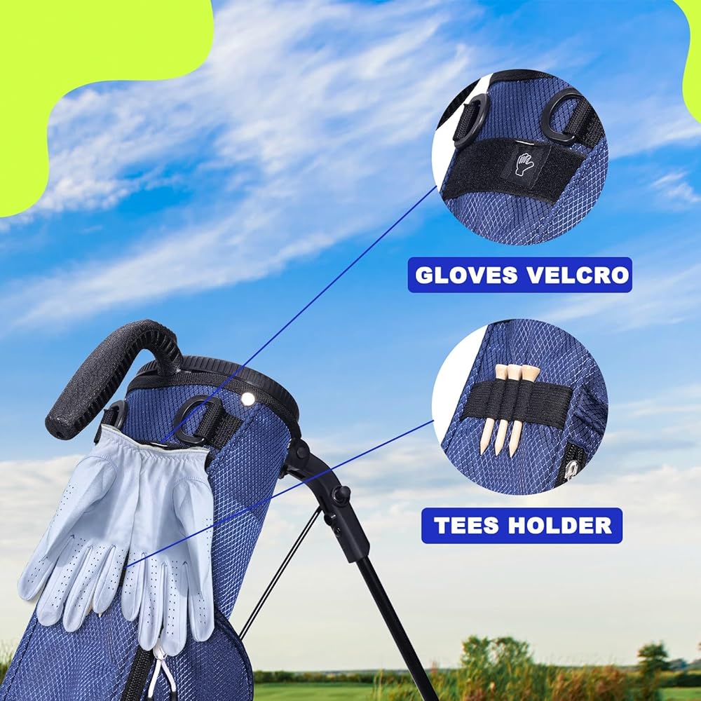 تدرب بسهولة: بفضل حاملها المريح، تعتبر حقيبة الجولف الصغيرة هذه مثالية لجلسات التدريب وتسمح لك بالوصول بسهولة إلى النوادي والإكسسوارات الخاصة بك دون الحاجة إلى الانحناء أو البحث في حقيبة كبيرة.