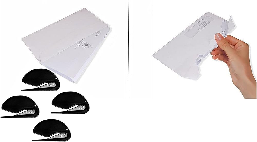 4 أدوات فتح الرسائل البلاستيكية الأكثر كفاءة في العالم، مجموعة أدوات تقطيع الأظرف ذات شفرات حلاقة بلاستيكية حادة (أسود)