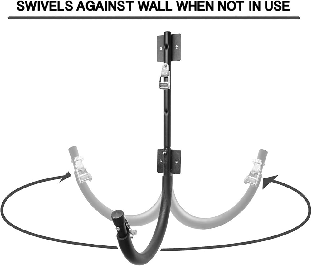 شماعة كاياك قابلة للطي مثبتة على الحائط - يتميز حامل كاياك J المثبت على الحائط بخطافات تتأرجح ويمكن طيها بشكل مسطح على الحائط عند عدم الاستخدام، مما يوفر المساحة ويمنع الحوادث.