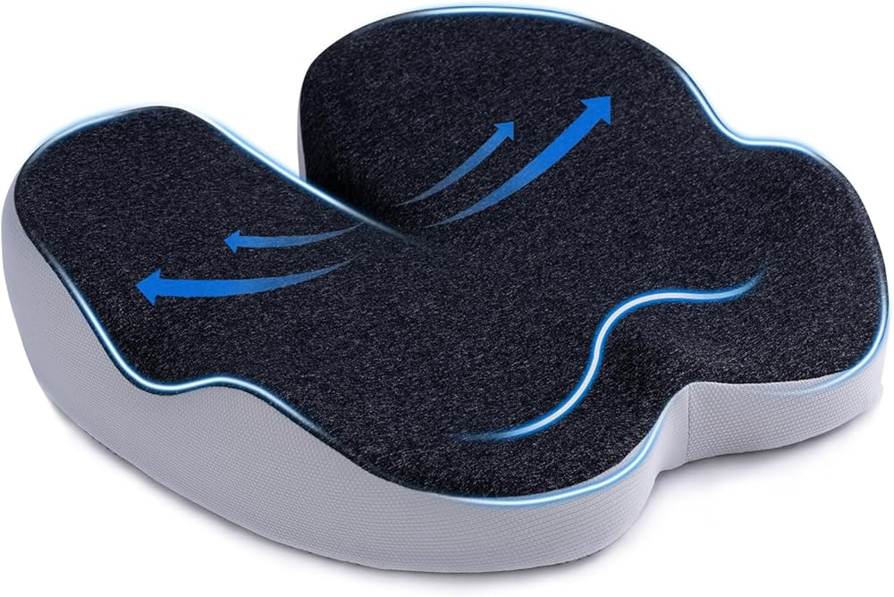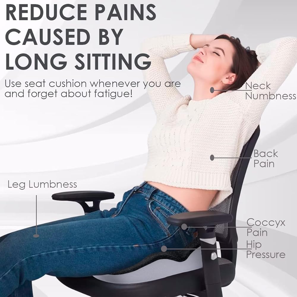 وسائد مقعد لكراسي المكتب، وسادة مقعد مريحة لتخفيف الضغط من إسفنج الذاكرة لعظم الذنب والظهر وتخفيف آلام العصعص، ودعم وسادة المؤخرة للسيارة والكمبيوتر وكراسي المكتب باللون الأسود