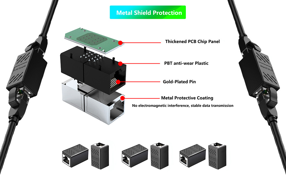 • محول إيثرنت مكون من 6 قطع: لحل مشكلة الطول غير الكافي لكابلات إيثرنت في المكاتب والمنازل، قم بتوصيل كابلين للشبكة مع موصل RJ45 لتمديد طول كابل الشبكة.