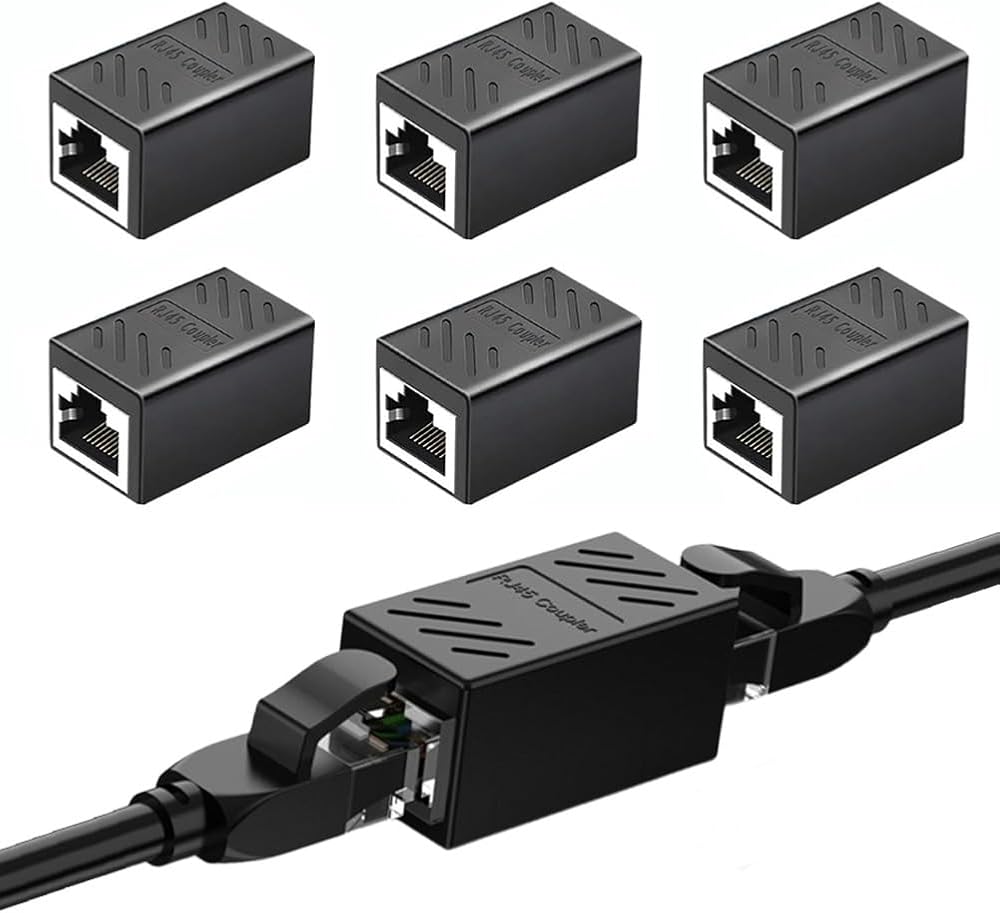 6 حزمة موسع إيثرنت، موسع كابل إيثرنت، وصلة RJ45 أنثى إلى أنثى محول إيثرنت تمديد طول كابل إيثرنت لـ Cat7/ Cat6/ Cat5/ Cat5e (أسود)