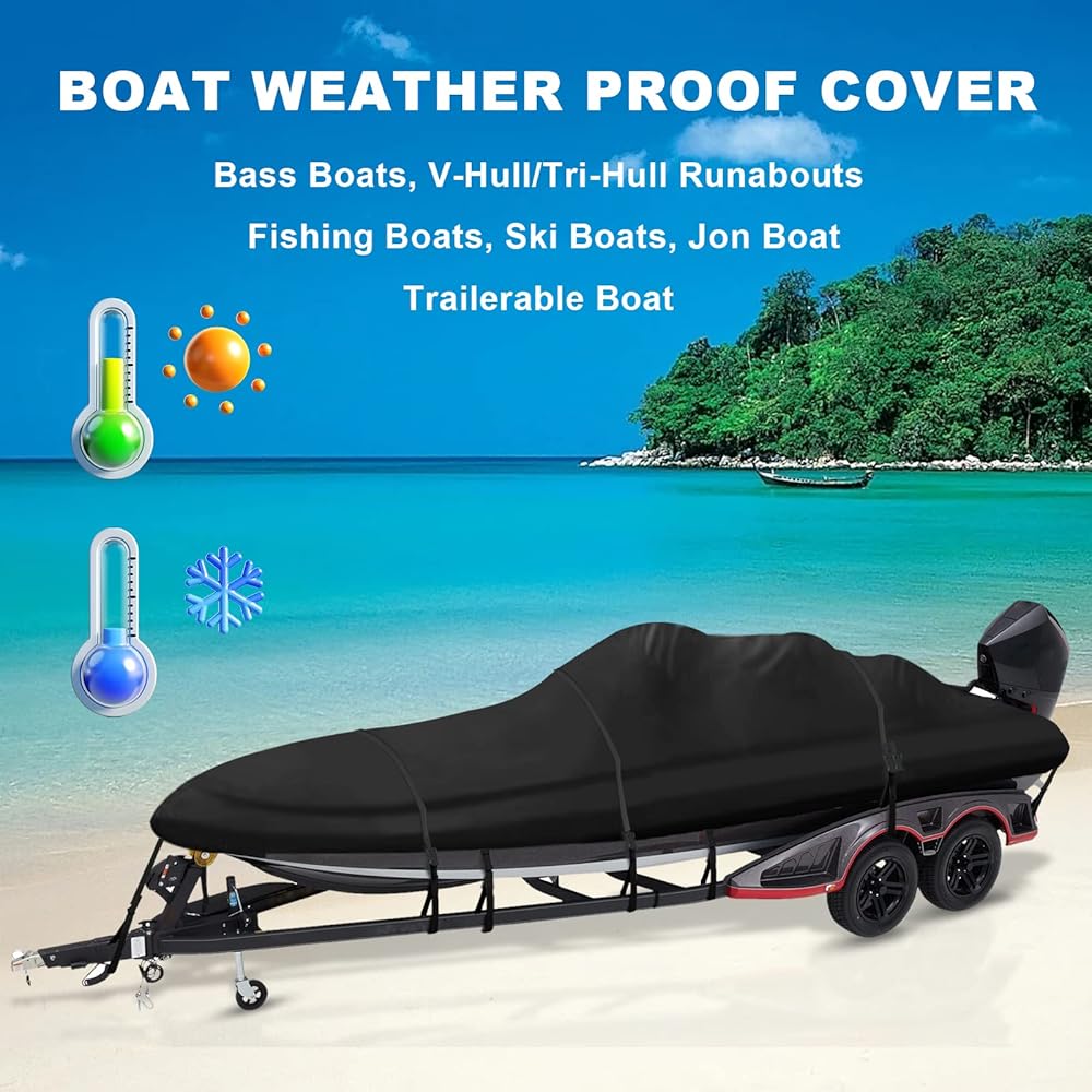 غطاء مقاوم للطقس للقارب: أغطية القوارب مناسبة لأنواع مختلفة من القوارب، بما في ذلك قوارب الباس، وقوارب V-Hull/Tri-Hull Runabouts، وقوارب الصيد، وقوارب التزلج، وقوارب جون، والقوارب القابلة للمقطورة. ستكون أغطية القوارب مناسبة كقفاز للقارب الخاص بك.