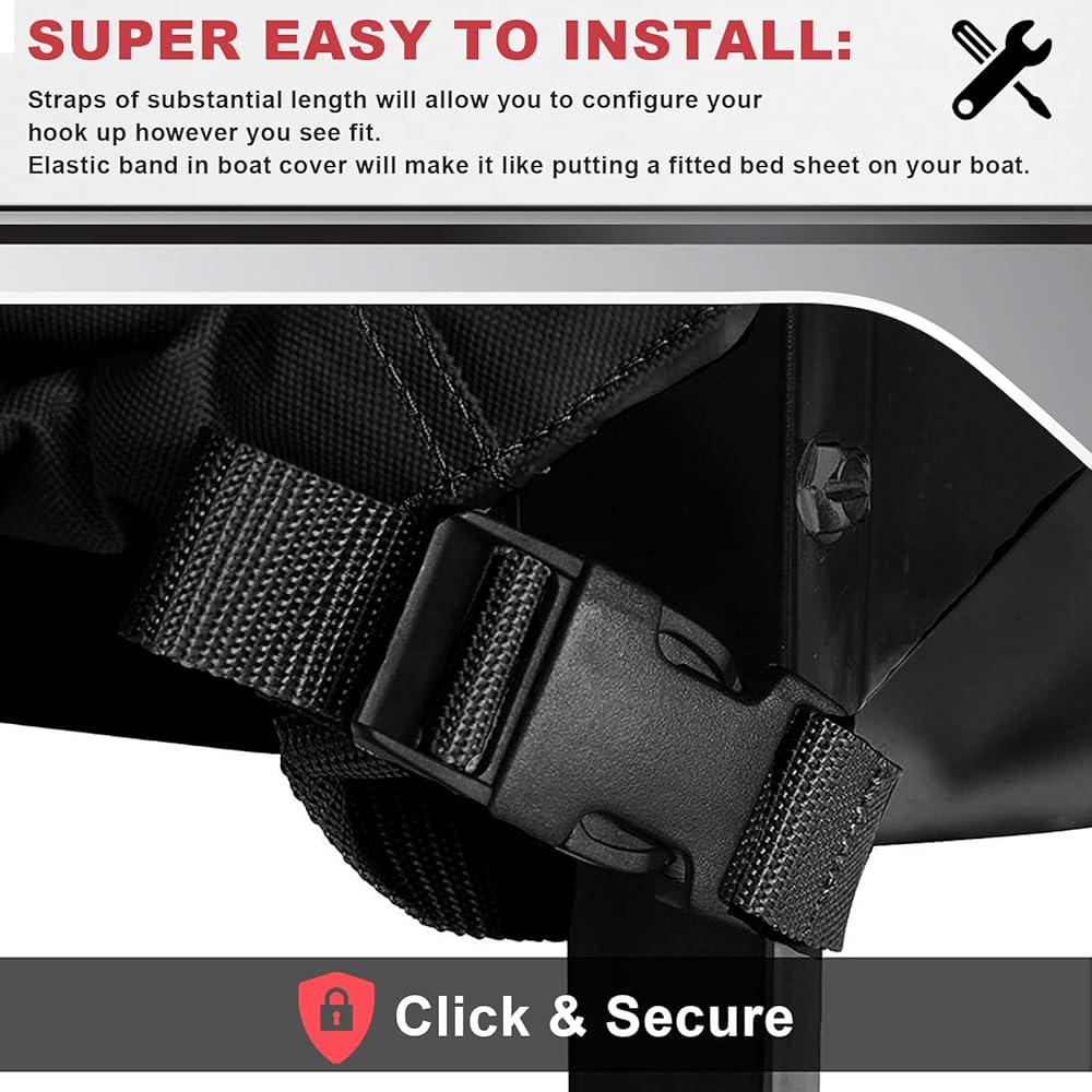 سهلة التركيب للغاية: ستسمح لك الأشرطة ذات الطول الكبير بتكوين خطافك بالطريقة التي تراها مناسبة. لقد تأكدنا من أن تركيب أغطية القوارب الخاصة بنا أمر سهل. بالإضافة إلى ذلك، يضمن الشريط المطاطي الموجود في الغطاء ملاءمة محكمة وآمنة، مما يجعل الأمر سهلاً مثل وضع ملاءة سرير مناسبة.
