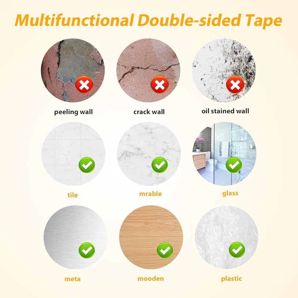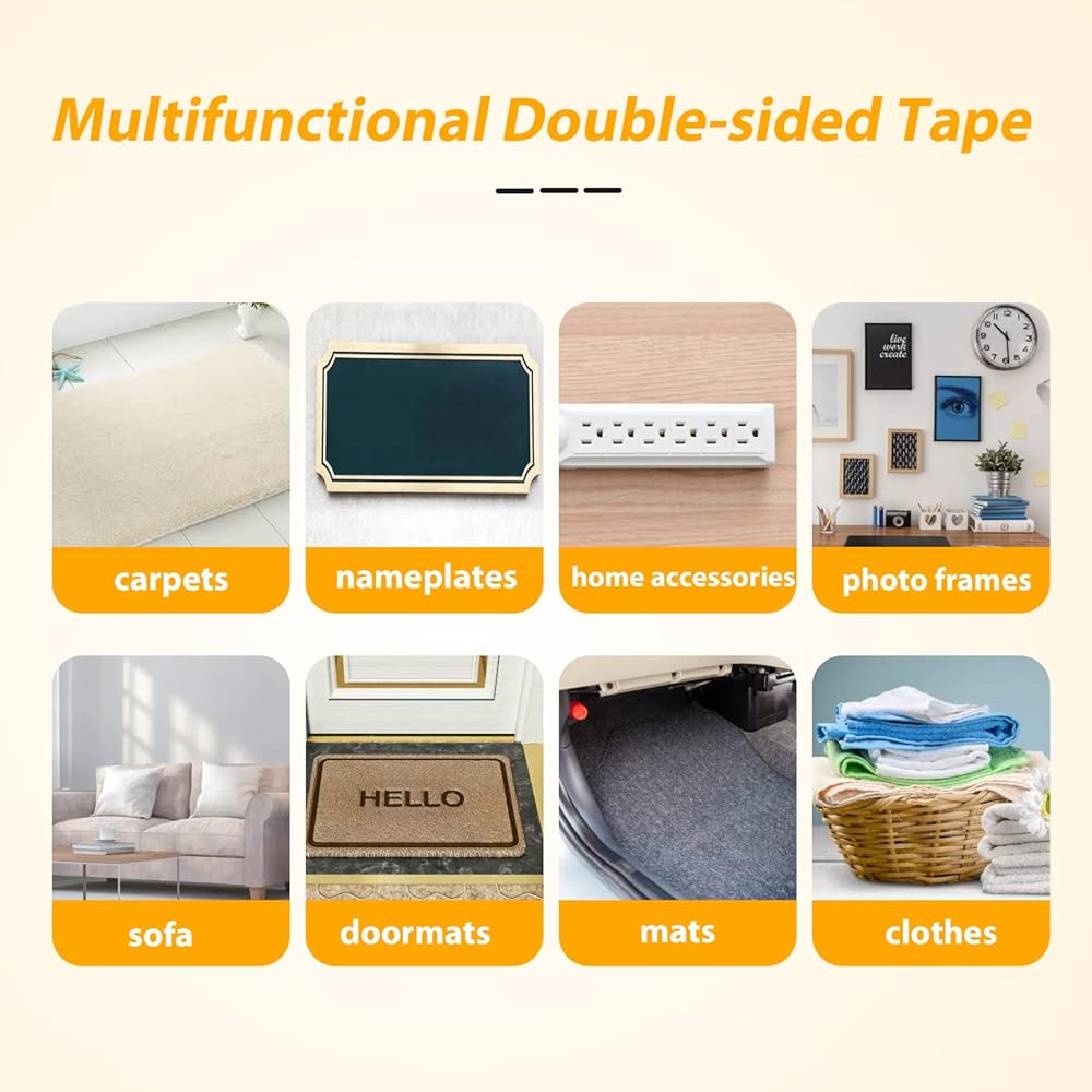 Wide Application: Our multifunctional double sided tape can be widely used for various occasions, such as home, office, school, hospital, cinema, etc. Suitable for sticking heavy duty items, like carpets, rugs, fridges, doormats, car mats, etc. Also fit for the surfaces of wood, ceramic tile, glass, plastic, etc.