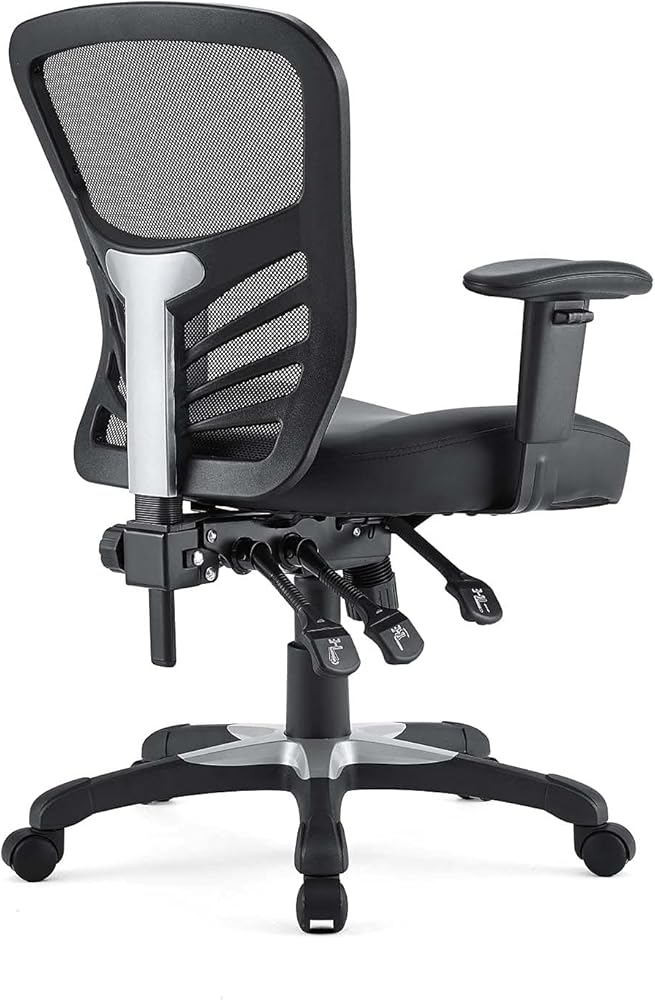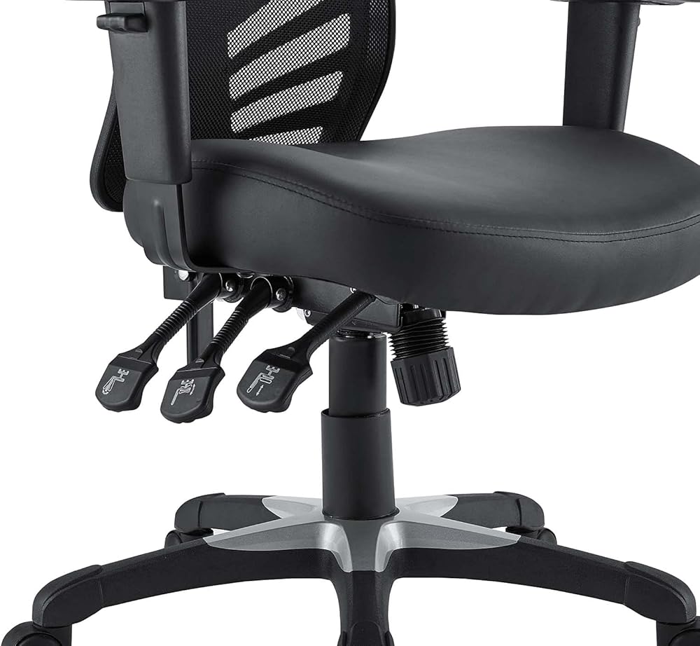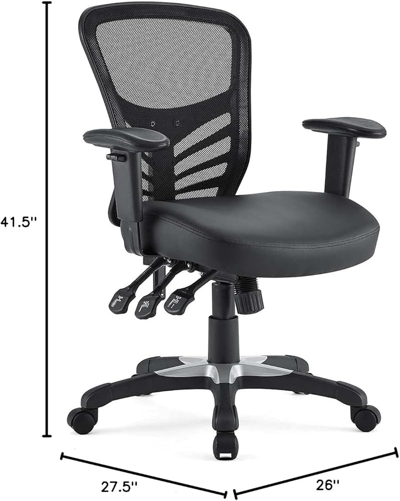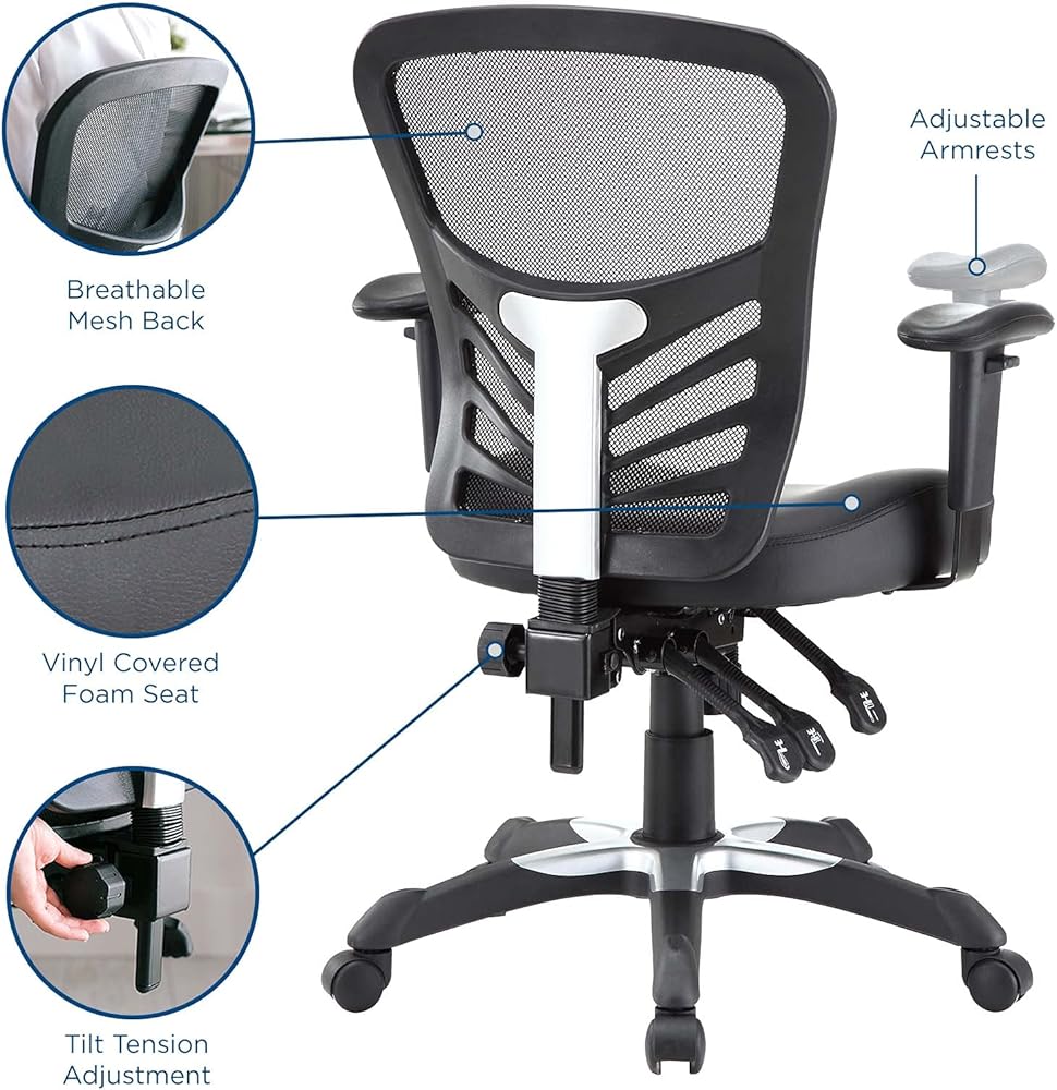 • ERGONOMIC - Articulate includes lower back lumbar support, a waterfall vinyl seat to keep your back and thighs posture perfect, padded armrests, 360 degree swivel, and seat tilt plus tension control knob.