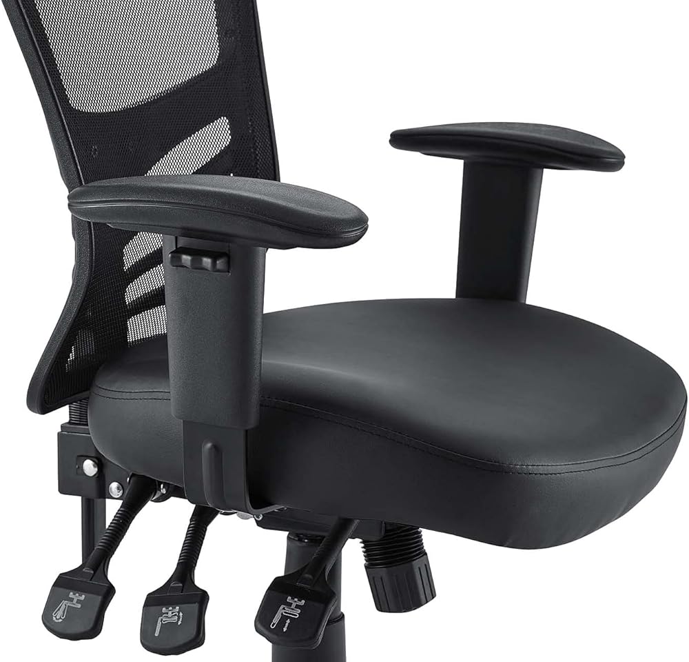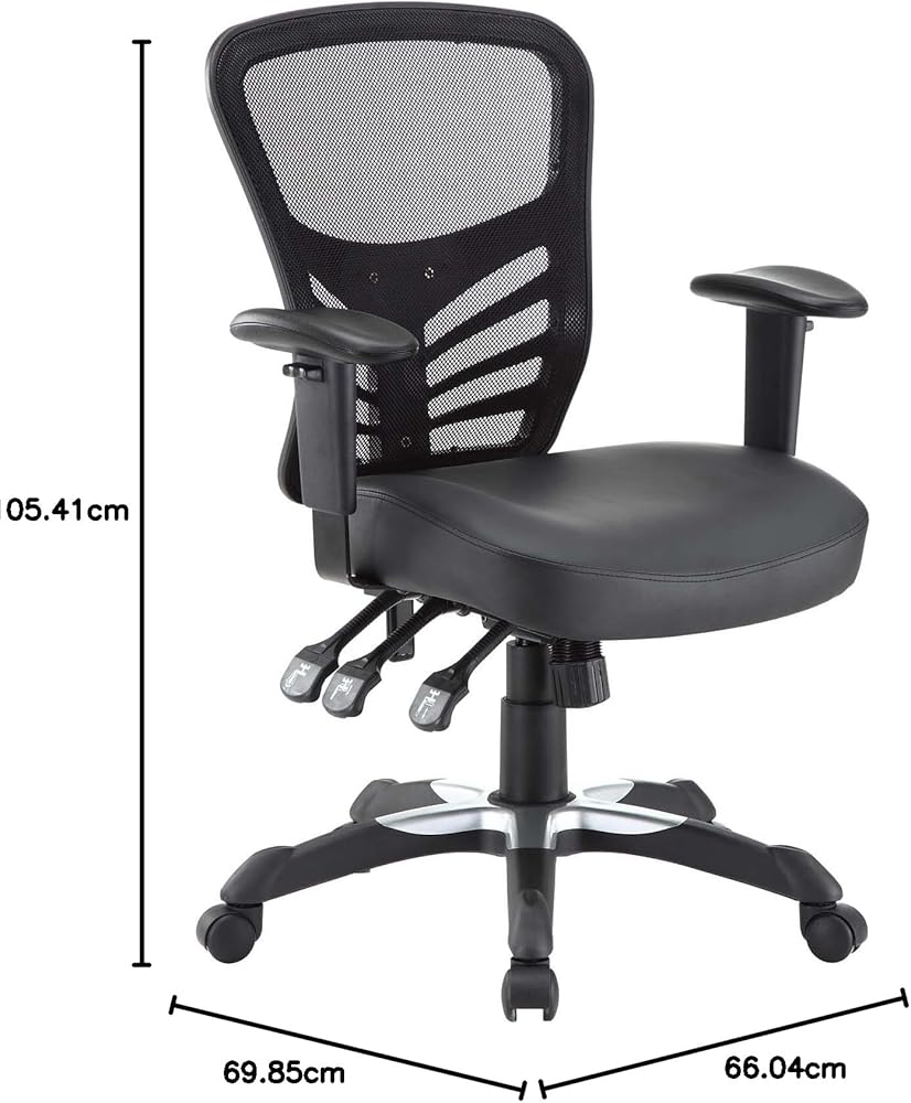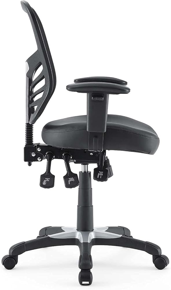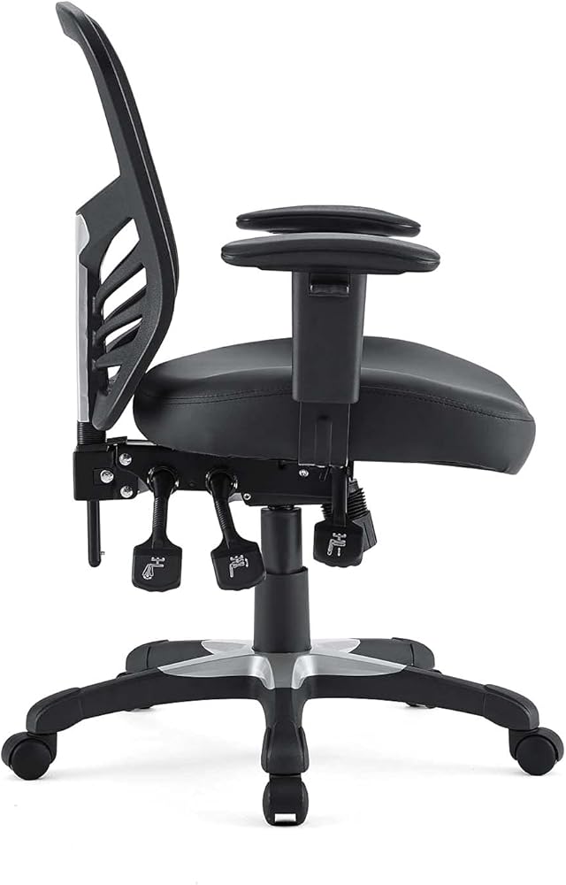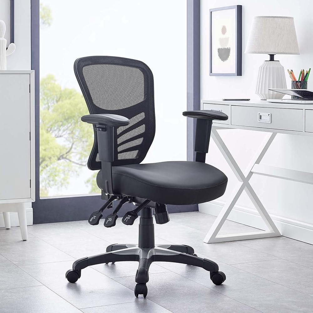 • ERGONOMIC - Articulate includes lower back lumbar support, a waterfall vinyl seat to keep your back and thighs posture perfect, padded armrests, 360 degree swivel, and seat tilt plus tension control knob.