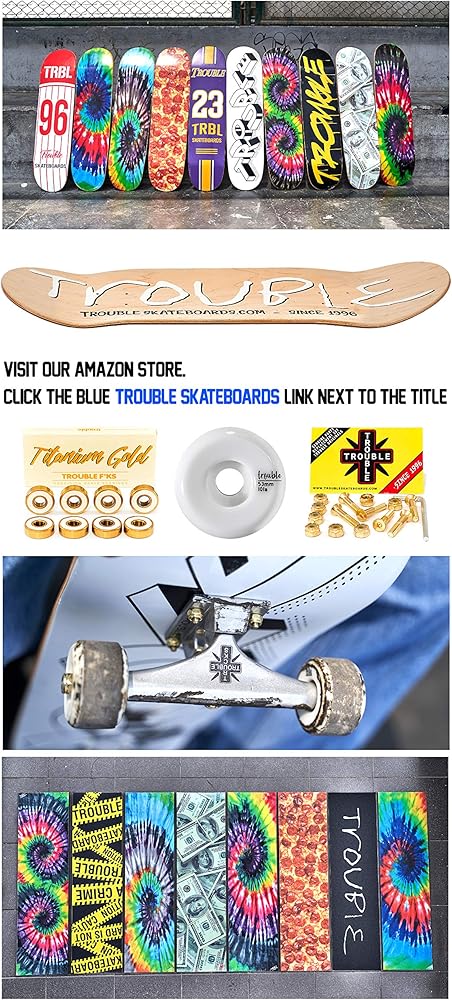 • تعد شركة Trouble Skateboards شركة مصنعة وموزعة لشريط الإمساك والأسطح والإكسسوارات عالية الأداء منذ عام 1996.