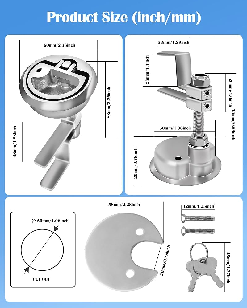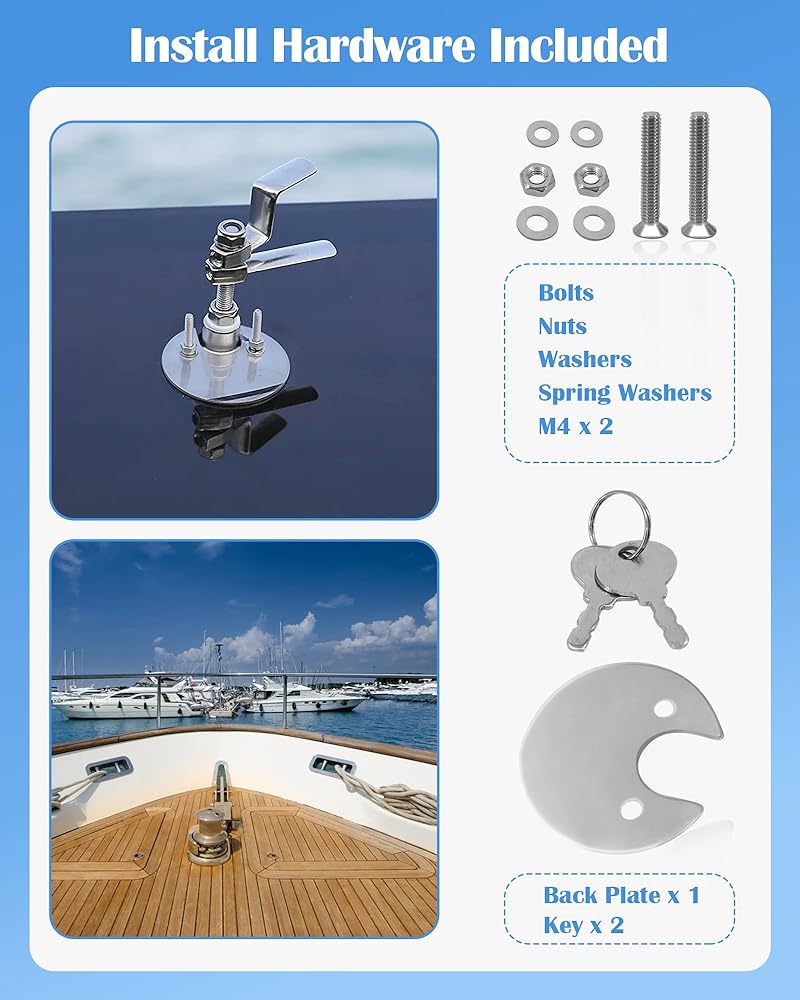 مزلاج على شكل مشبك على أرضية القارب من الدرجة البحرية 316 من الفولاذ المقاوم للصدأ نمط قفل مقبض الرفع مع مفتاحين ومسمارين