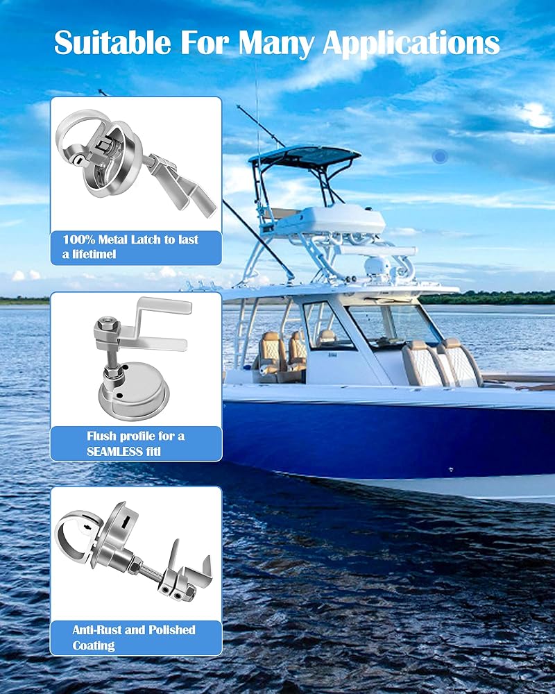 - مزلاج فتحة القارب مصنوع من الفولاذ المقاوم للصدأ بدرجة 316، مما يوفر أقصى قدر من المقاومة للتآكل والمتانة في بيئات المياه المالحة.
