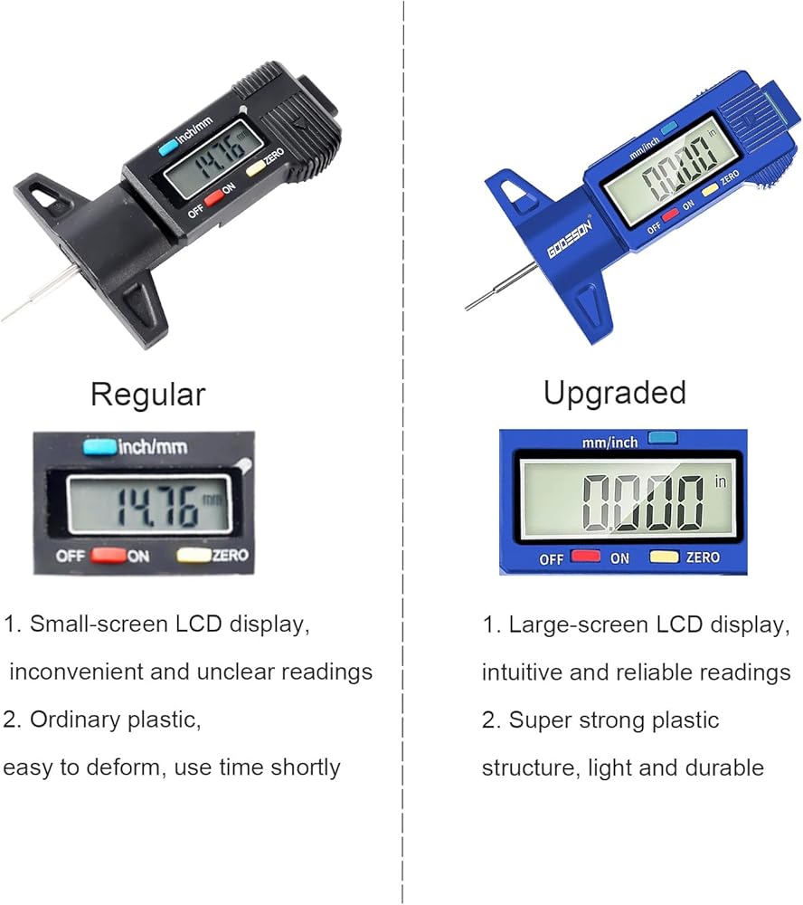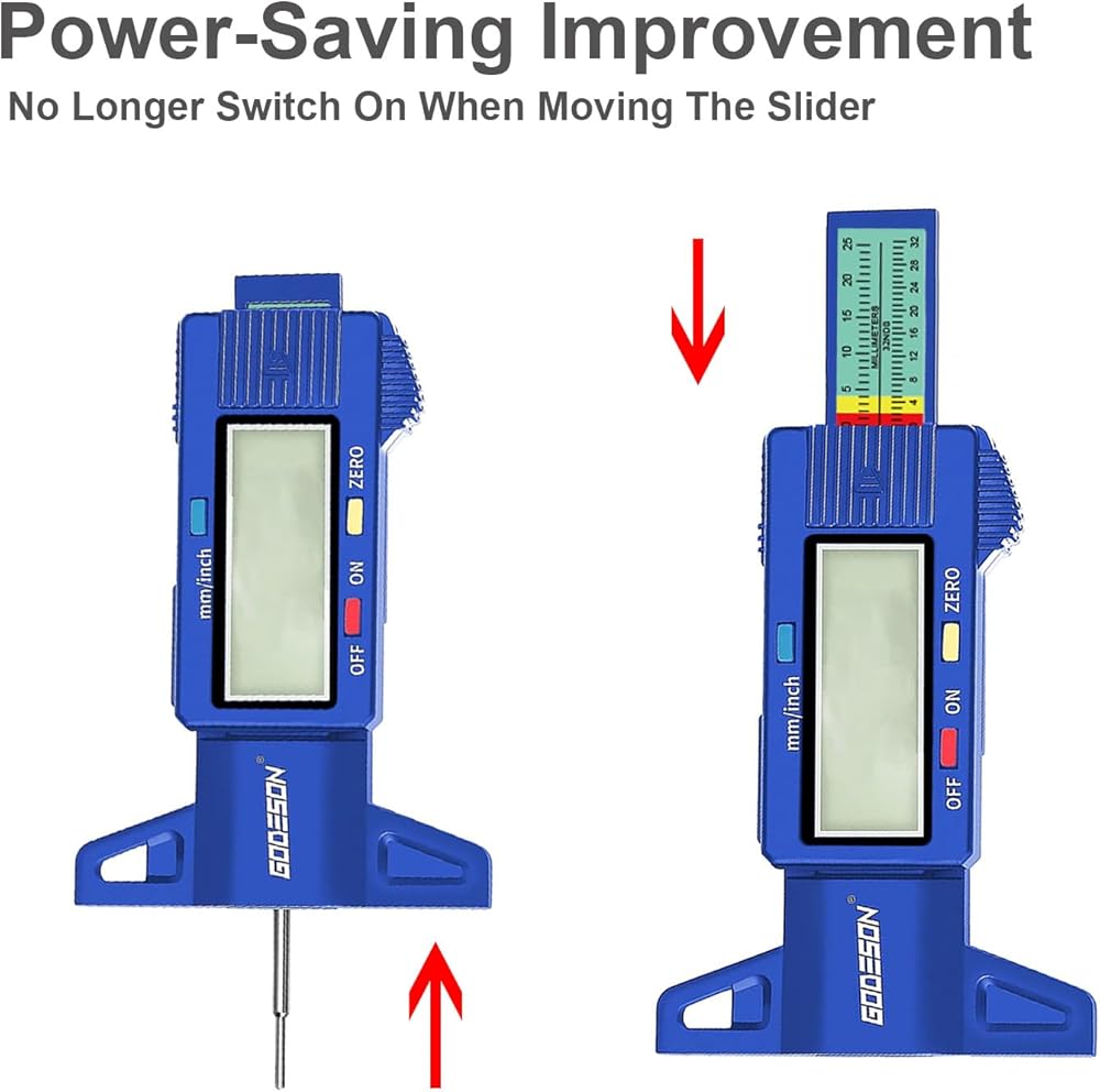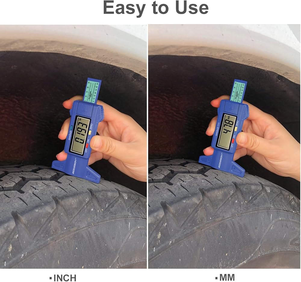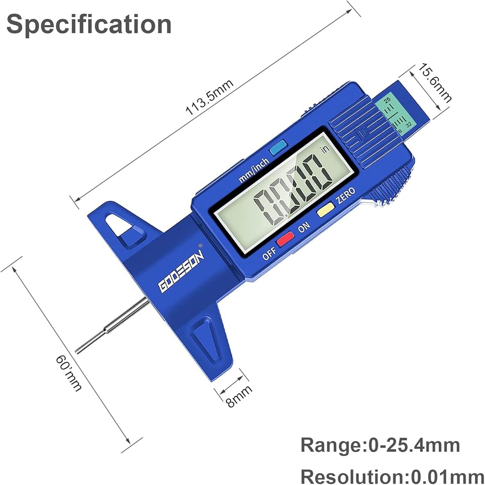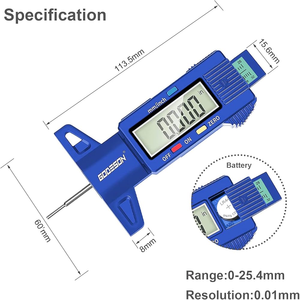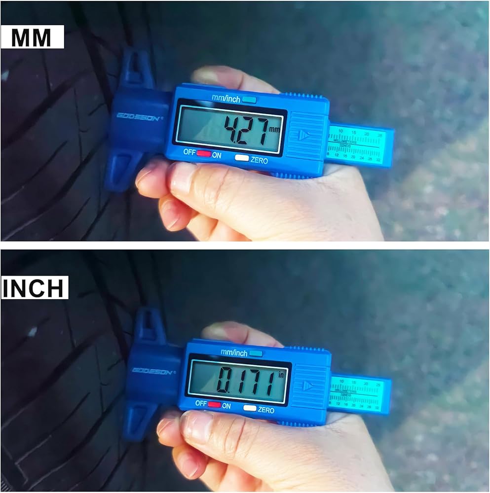 مقياس عمق مداس الإطارات GODESON، مقياس عمق مداس الإطارات الرقمي بالبوصة/مم مع شاشة LCD كبيرة وأداة قياس عمق مداس الإطارات للسيارات والشاحنات والدراجات النارية (أزرق)