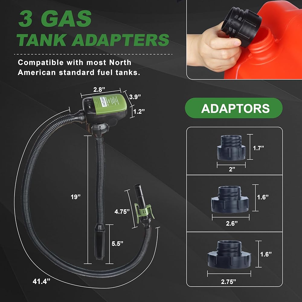 【توافق شامل للمضخة】: خرطوم مصنوع من بلاستيك البولي إيثيلين المتين للغاية والمقاوم للصدأ والتآكل؛ يأتي مع غطاء مانع تسرب الزيت ويناسب معظم خزانات الوقود البلاستيكية في أمريكا الشمالية مع 3 أحجام محولات مختلفة (متضمنة)؛ خزان الغاز غير متضمن ولا يناسب خزانات غاز FMD.