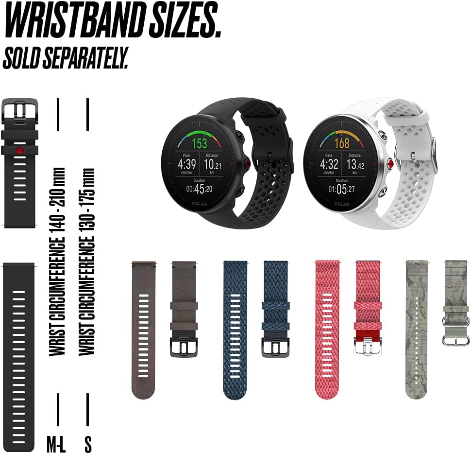 POLAR VANTAGE M - ساعة جري متقدمة ورياضات متعددة مع نظام تحديد المواقع العالمي (GPS) ومعدل ضربات القلب على المعصم (تصميم خفيف الوزن وأحدث التقنيات)، أسود، M-L