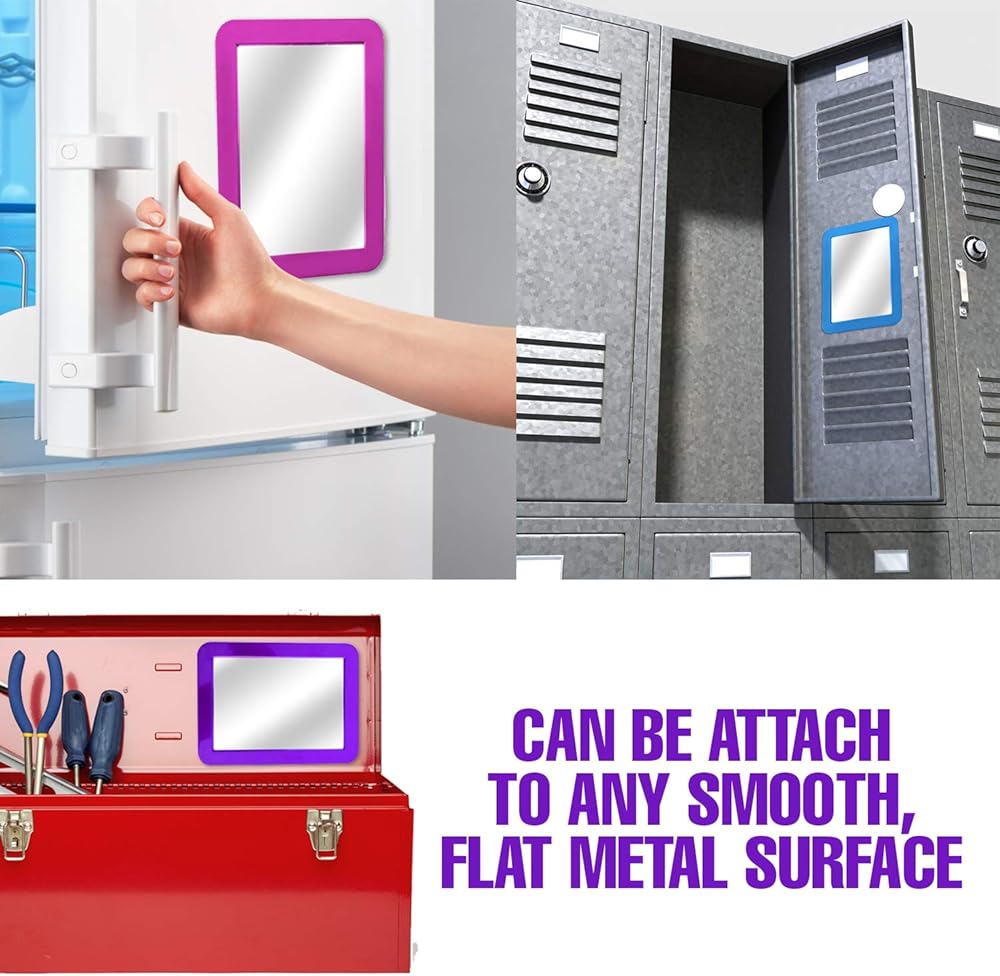 • ✅ PERFECT MIRROR This locker mirror is perfect for makeup, hair styling, and more daily use, and the large viewing surface lets you see your entire face and hair at a glance. The magnetic mirror allows you to makeup or performs facial close-ups