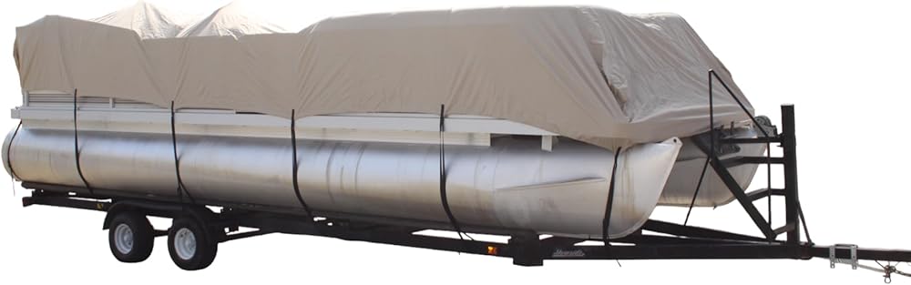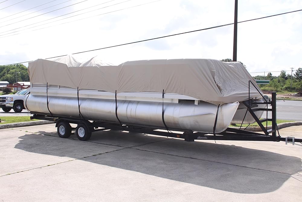 غطاء قارب عائم/سطح السفينة من القماش الجديد 1200D باللون البيج بطول 20 قدمًا VORTEX Ultra 5 سنوات، مرن، نظام حزام، يناسب مساحة السطح الطويلة من 18'1 بوصة إلى 20 بوصة، حتى 102 بوصة
