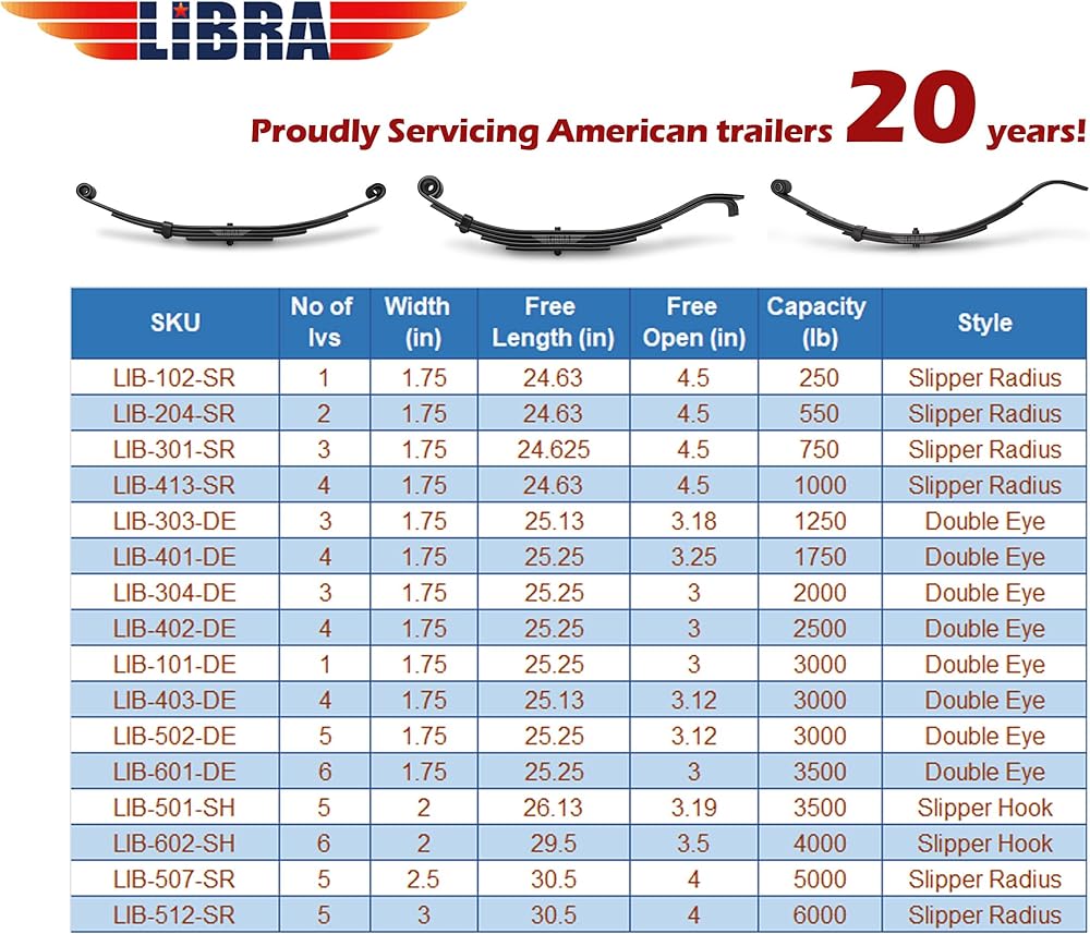 4,000lbs capacity per each spring, for standard 8,000lbs trailer axle