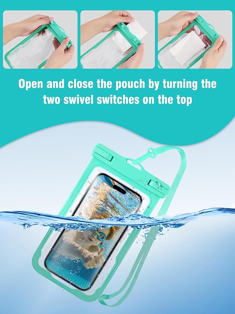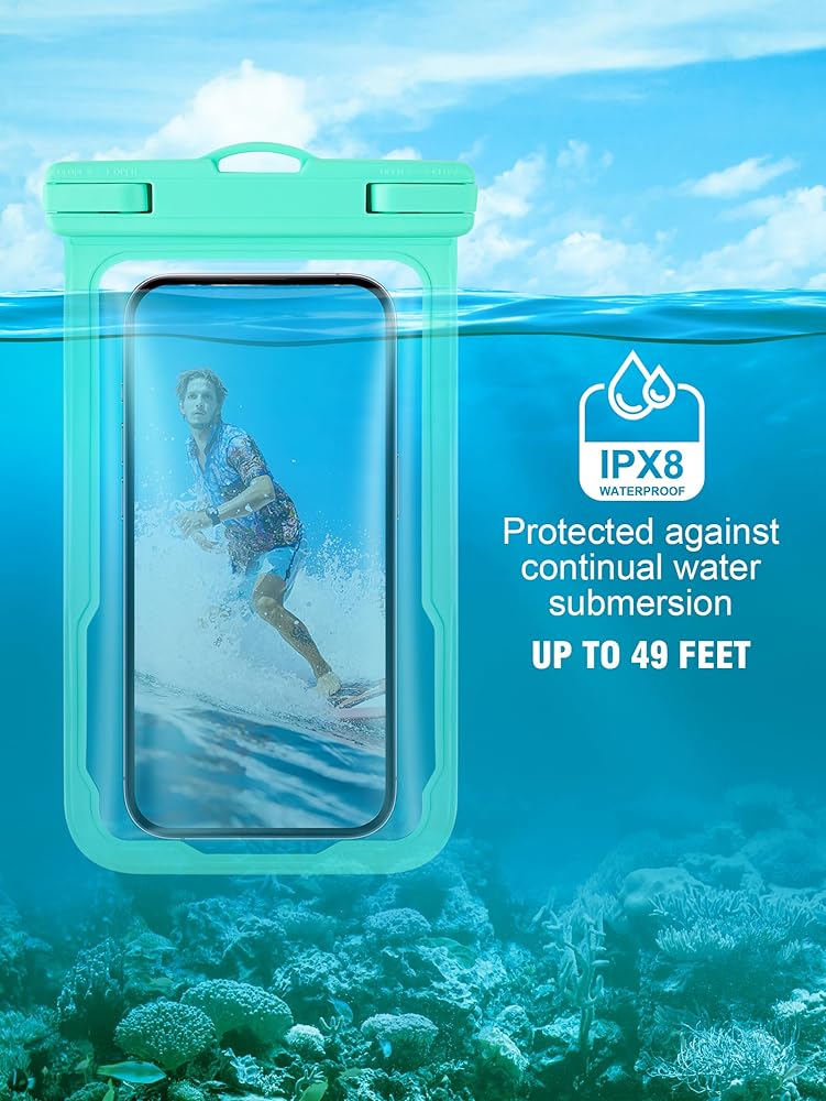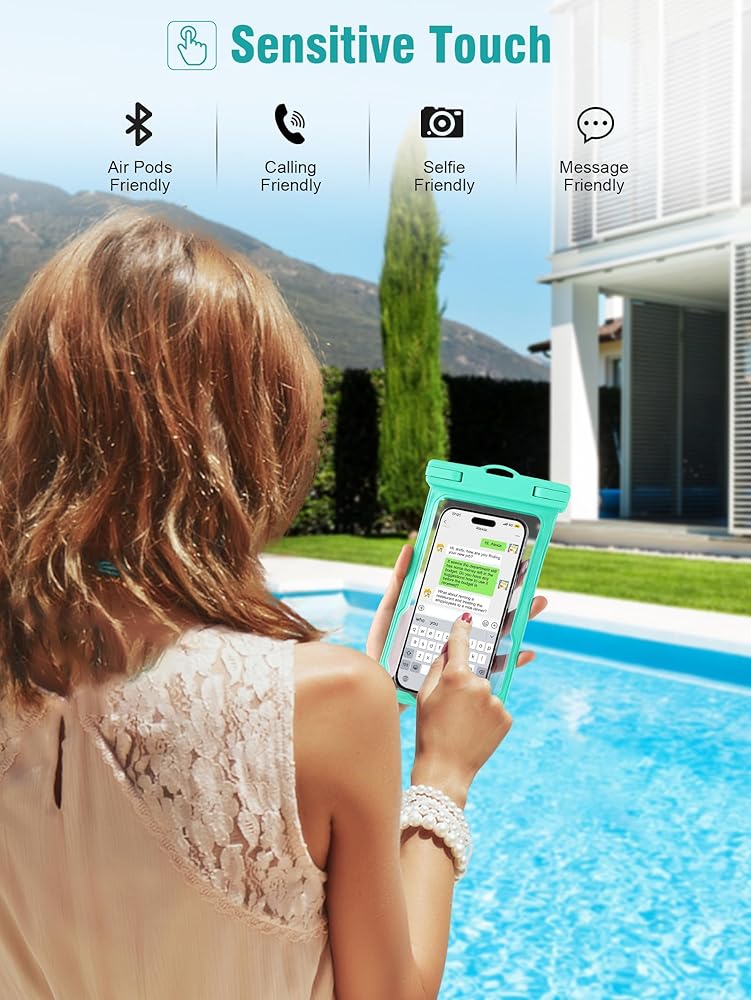 شاشة لمس سريعة الاستجابة - مع تصميم فريد على كلا الجانبين، تسمح حقيبة الهاتف الخلوي المقاومة للماء بلمسة سلسة للأزرار والشاشة سواء كنت على الأرض أو في الماء. يمكنك التنقل بسهولة عبر التطبيقات والرد على المكالمات وإرسال الرسائل دون أي عوائق