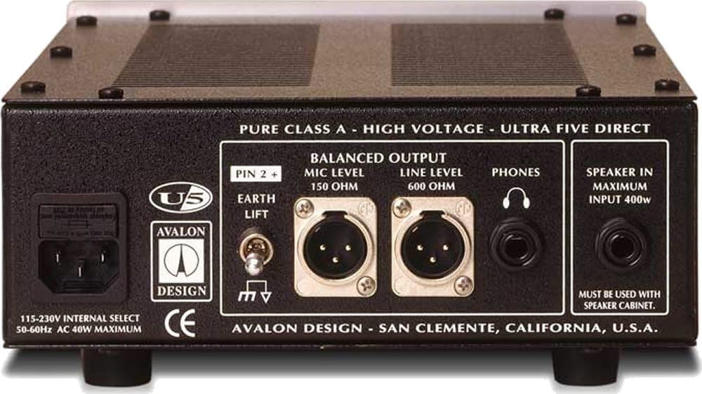The Avalon U5 Pure Class A instrument DI & preamplifier is the most powerful direct box available today. Designed to optimize absolute signal integrity and musical performance, the U5 includes many features and sonic excellence unequaled by lesser designs. The U5 is ideal for bass guitar and acoustic instruments, electric guitars, keyboards, synthesizers and low output pickups.