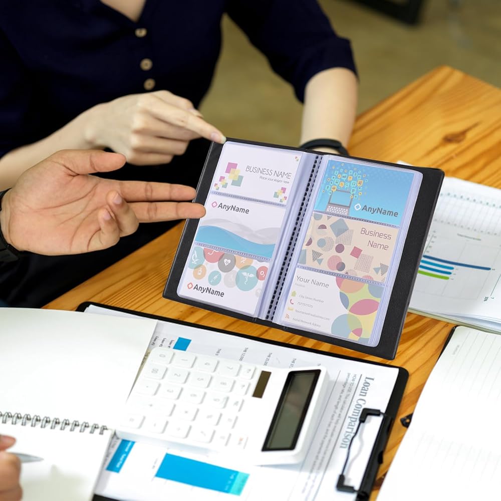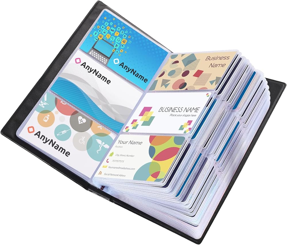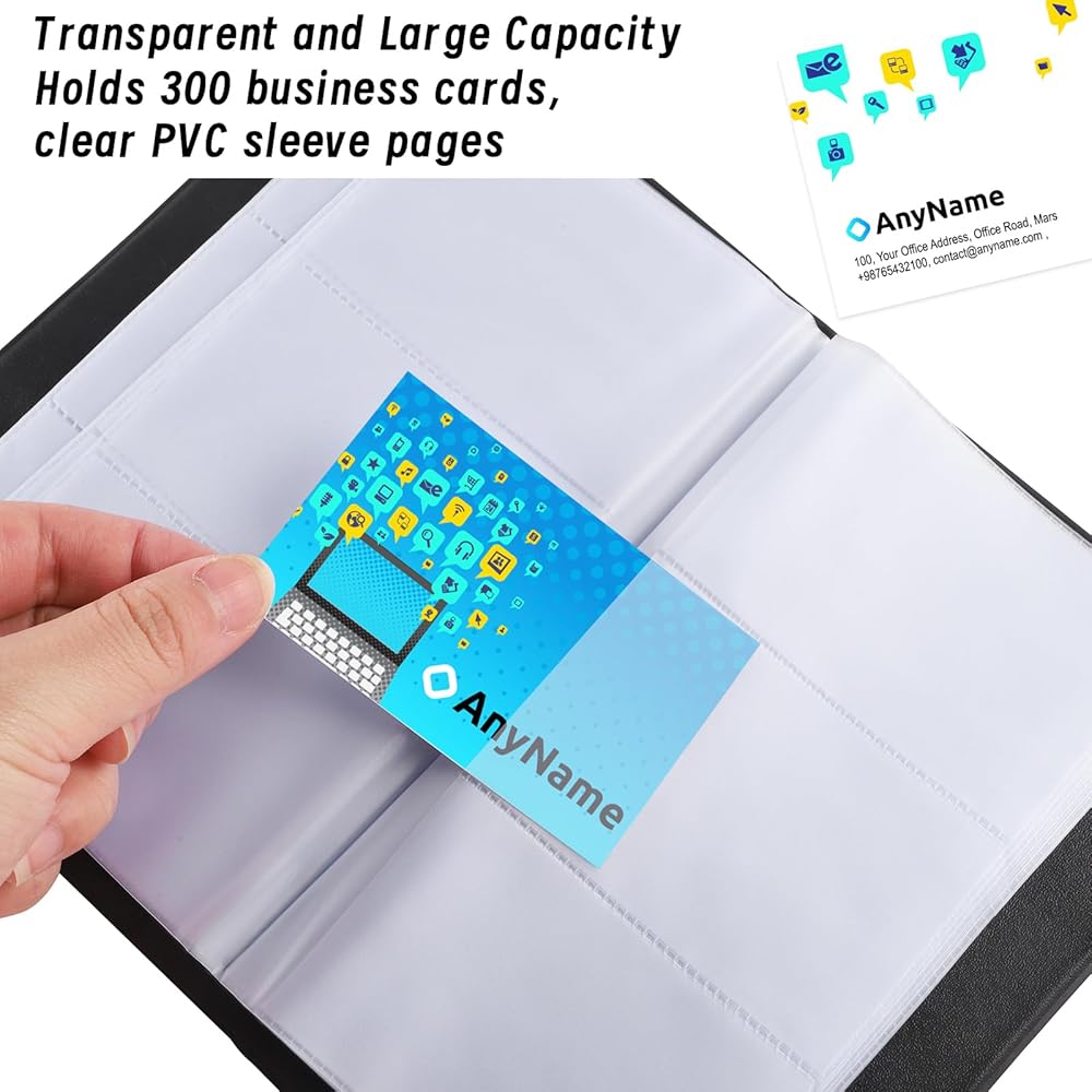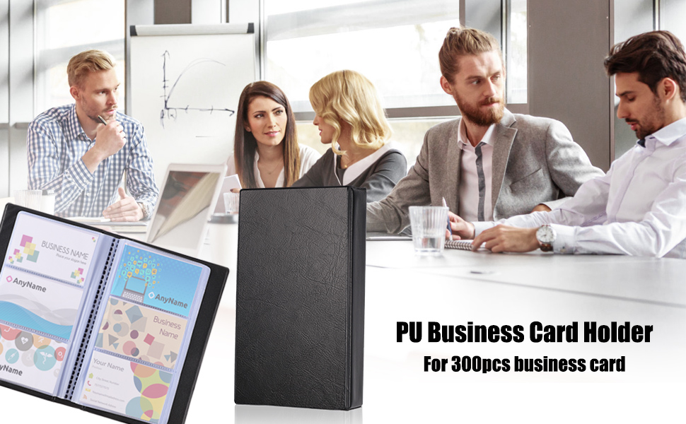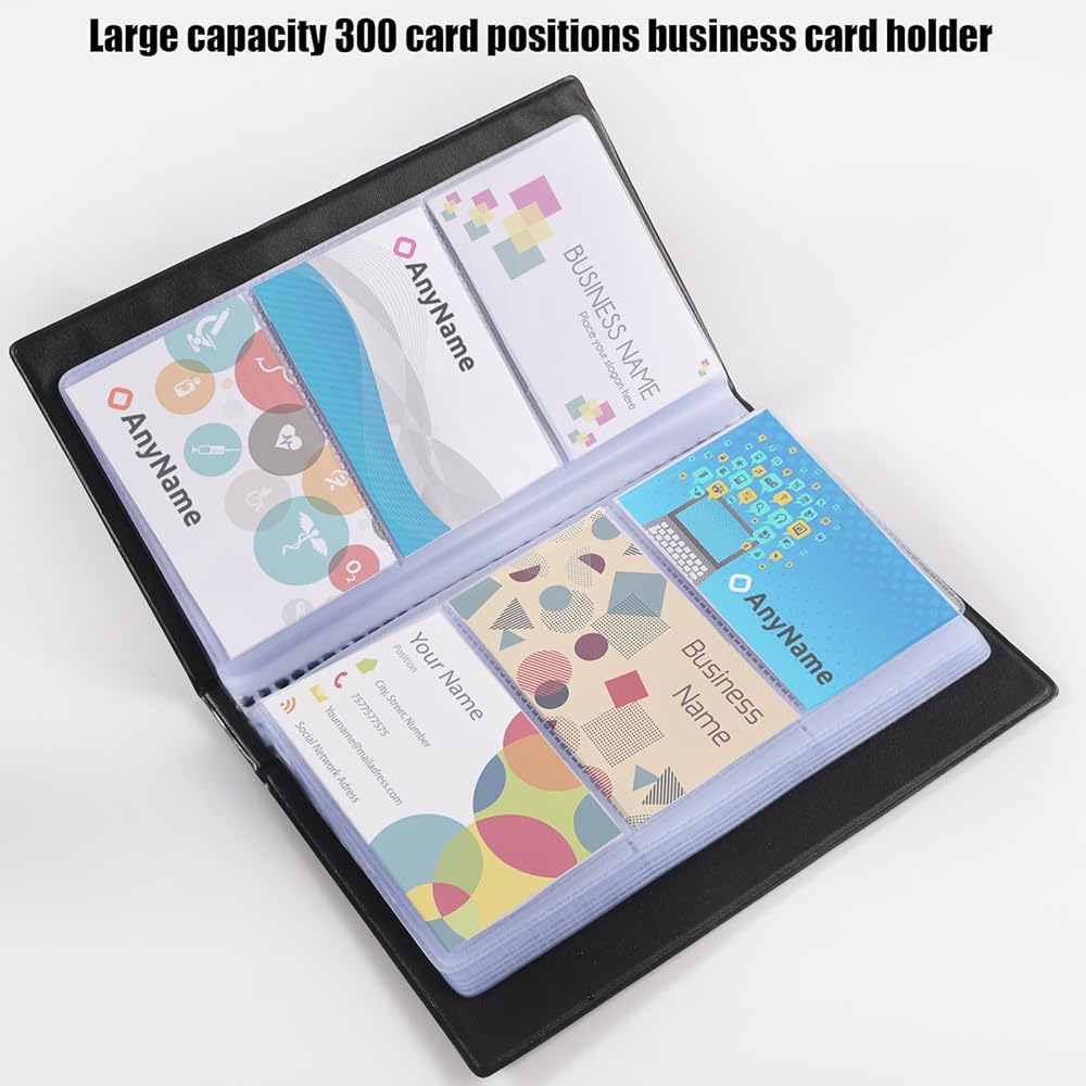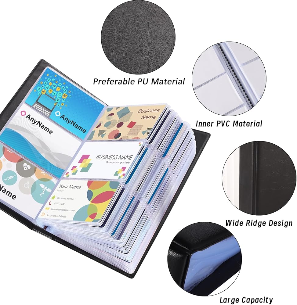 كتاب منظم بطاقات العمل 300 من Pimoys، كتاب حامل بطاقات الائتمان المقاوم للماء من البولي يوريثان، حامل بطاقات الاسم الأسود المحمول، منظم بطاقات الهدايا للرجال والنساء، تخزين ملفات مجلد بطاقات الأعمال