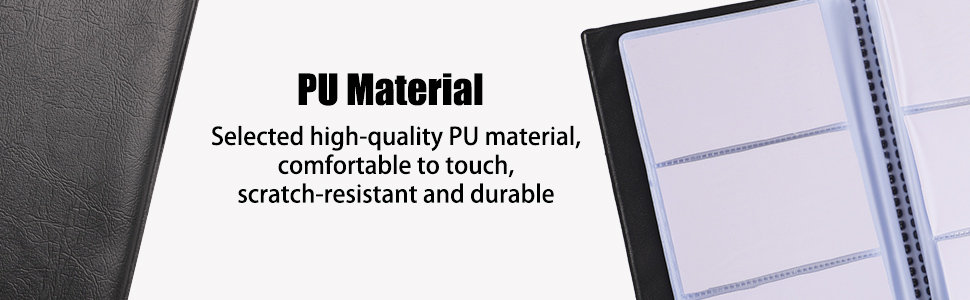 【مادة البولي يوريثين】منظم بطاقات العمل مصنوع من مادة البولي يوريثان عالية الجودة، ويمكن فتح تصميم الحافة العريضة وإغلاقه بسهولة دون تشوه. الصفحات الداخلية مصنوعة من مادة PVC الشفافة، وهي قوية ومتينة.