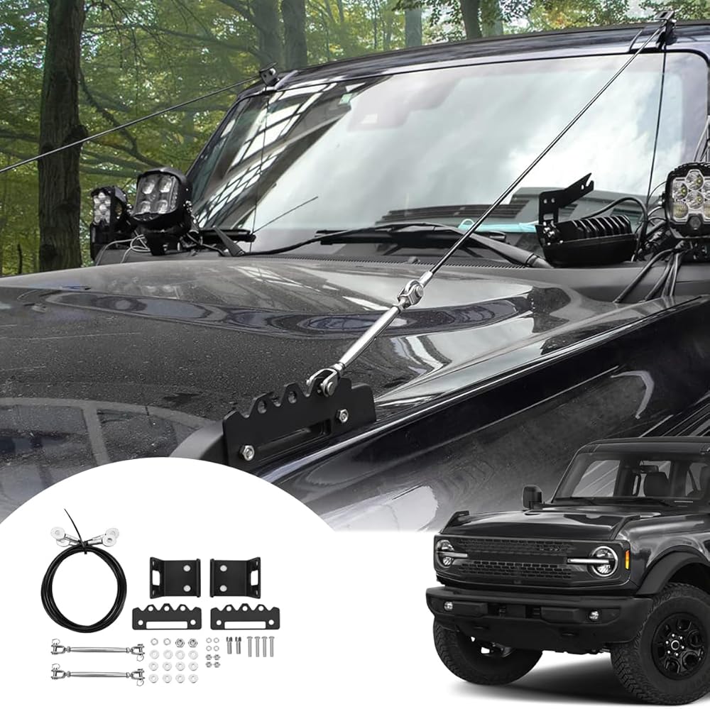 مجموعة رافعات الأطراف القابلة للتعديل من خلال حبل حماية الغابة لإزالة العوائق، غطاء المحرك الواقي لفروع الخط الفرعي ملحقات دعامة لسيارة Ford Bronco Offroad 2/4 Door 2021 2022 2023