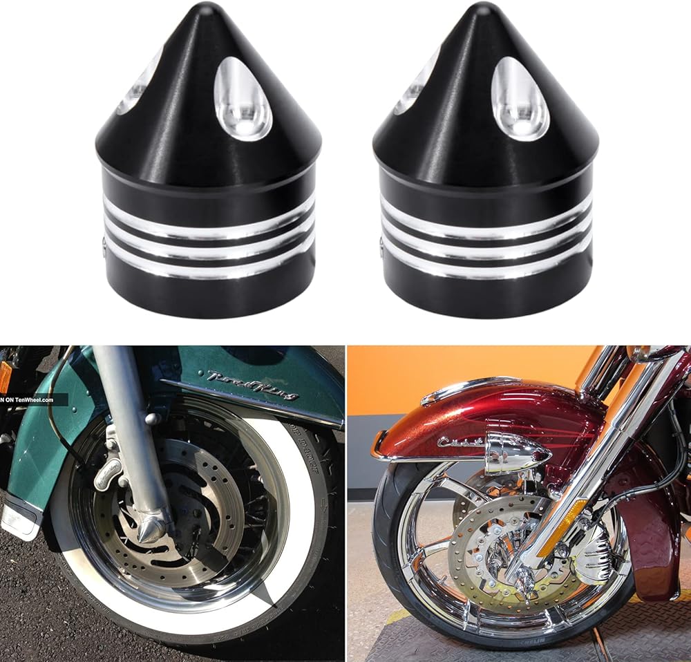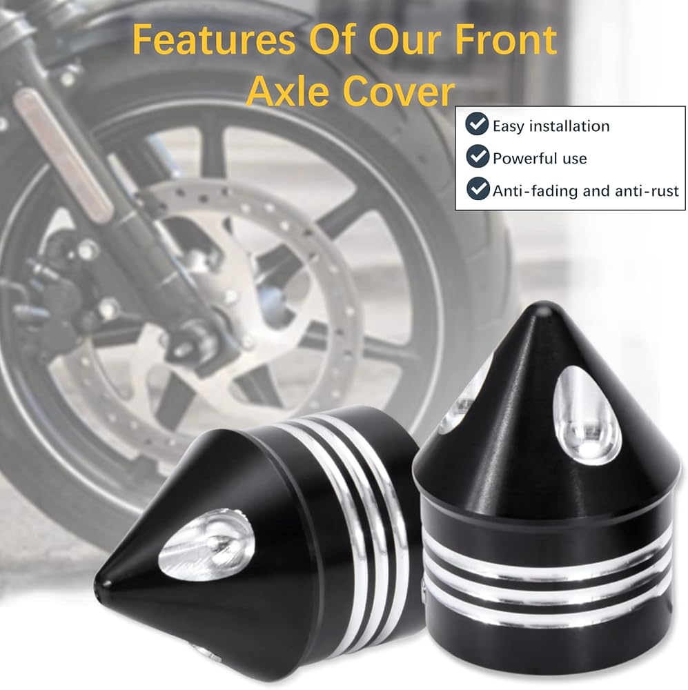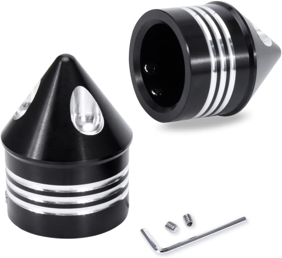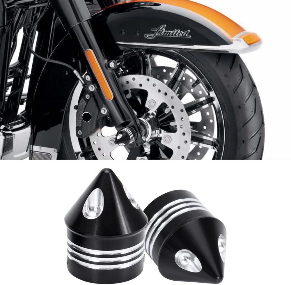 أغطية صواميل المحور الأمامي مصنوعة من سبائك الألومنيوم متوافقة مع Softail Dyna Sportster XL 883 1200 48 72 Road King Electra Glide - أسود، مدبب