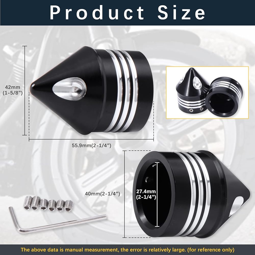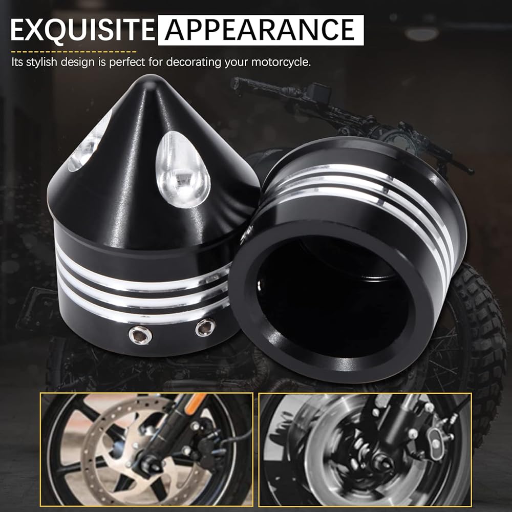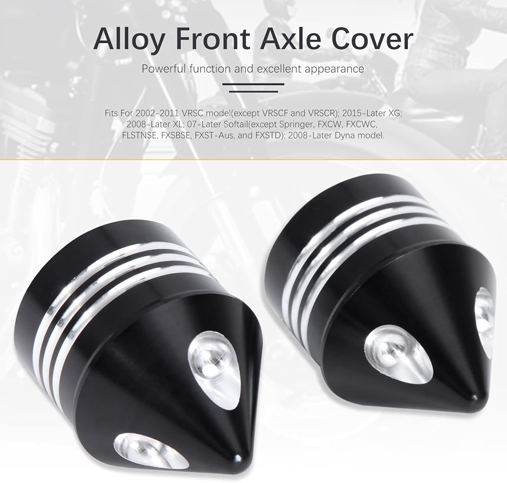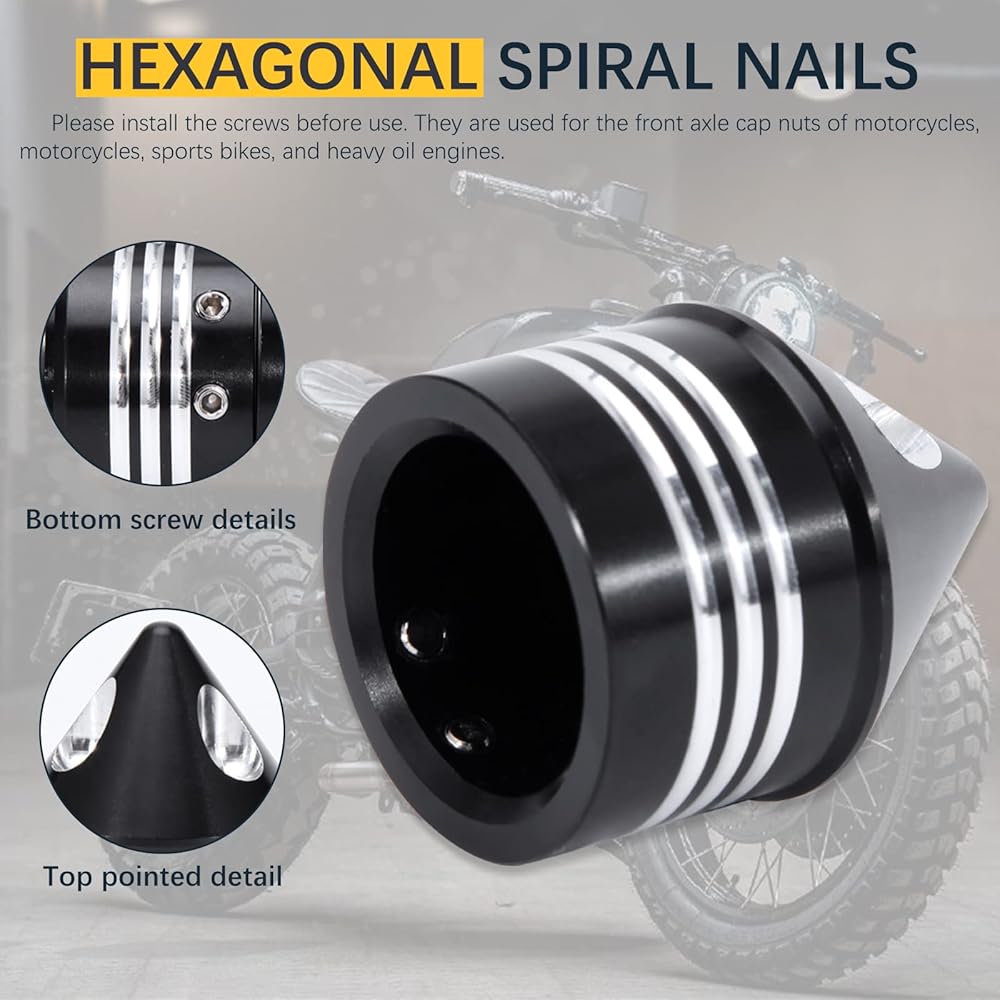 أغطية صواميل المحور الأمامي مصنوعة من سبائك الألومنيوم متوافقة مع Softail Dyna Sportster XL 883 1200 48 72 Road King Electra Glide - أسود، مدبب